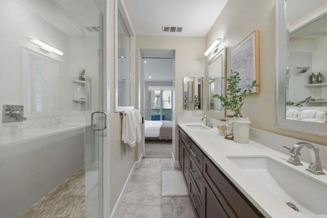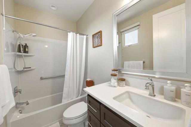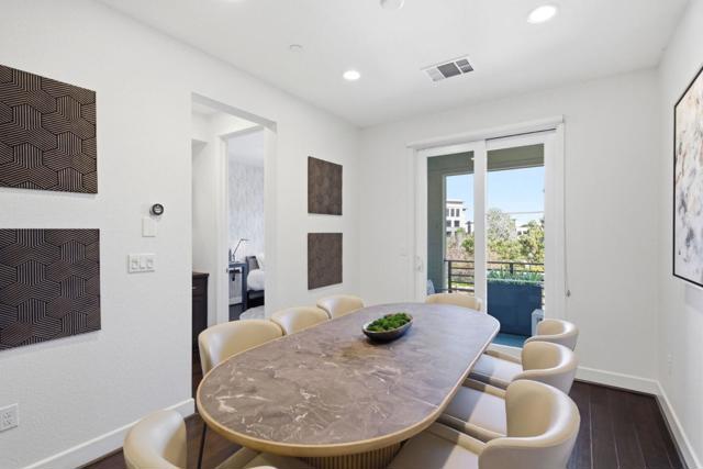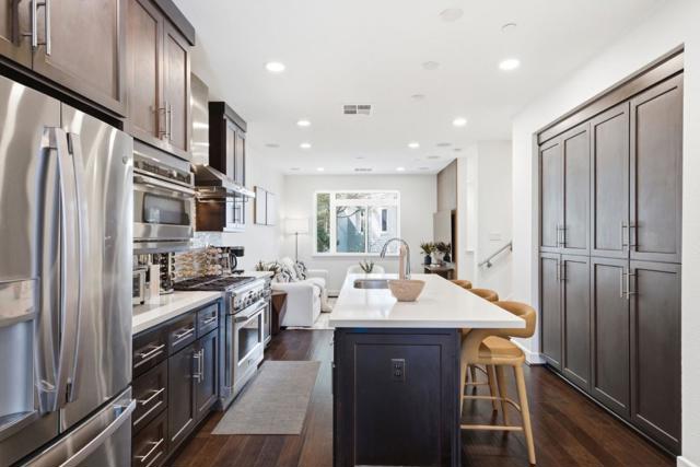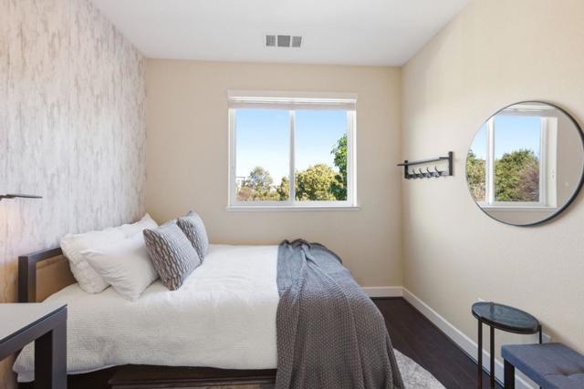 Tucked away behind Franklin Templeton on quiet tree lined Mawing Rd, this 2172 sqft townhome features 4 bdrms and 4 baths. Versatile main floor with living, dining, and kitchen naturally flowing from one room to the next. Kitchen is equipped with quartz counters, a large island, custom tile backsplash over a gas stovetop. Off the sizable dining area, a sliding glass door leads to a balcony, great for outdoor grilling. There is a bedroom and full bathroom off the main living area. Upstairs, retreat into a luxurious king suite with a walk-in closet with deluxe organizers, double vanities, and an oversized shower with rain bath system. Sliding glass doors ushers in natural light and fresh air from the private balcony. There is a smaller 2nd suite with a generous built-in closet and shower over the tub. A fourth room conveniently located downstairs for additional privacy is perfect for an entertainment room or guest suite with walk-in closet. The entire home is equipped with smart home recessed lights and ethernet wiring. Sizeable side-by-side 2-car garage with 220V outlet. $458/month HOA due covers the exterior and water. Coveted Bay Meadow location is a short walk to Hillsdale Mall, Caltrain bullet, parks, Nueva School, Whole Foods, Blue Bottle, Fieldworks and more.