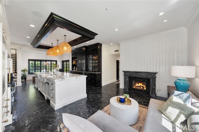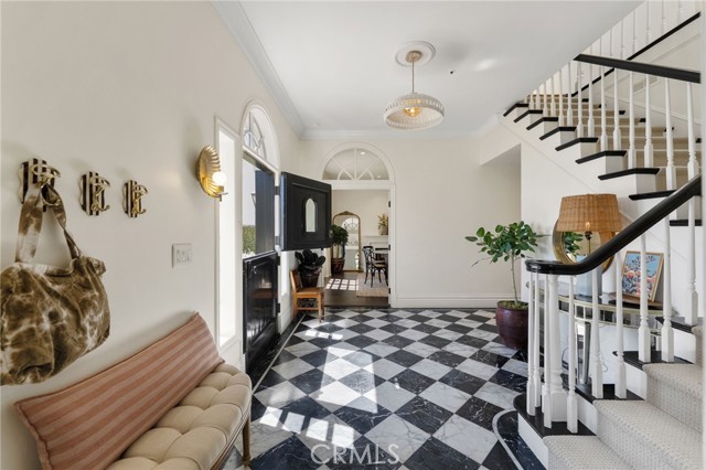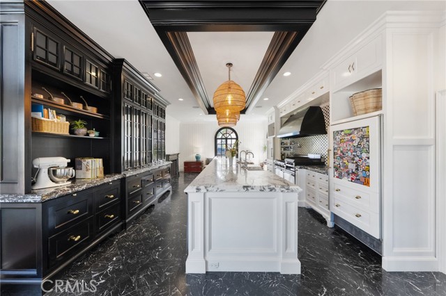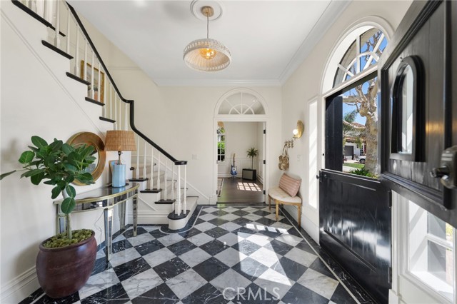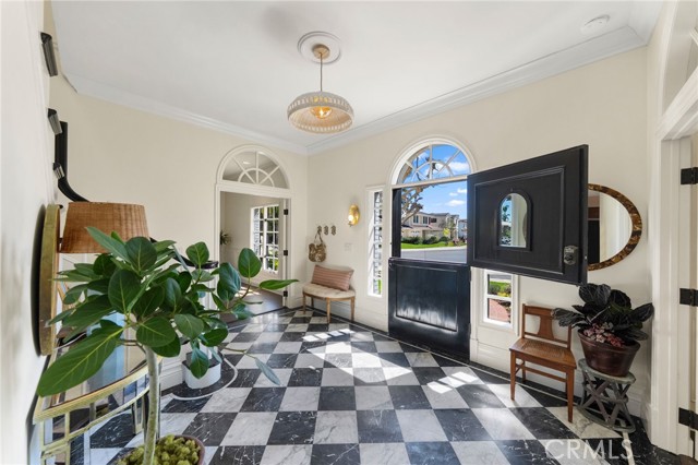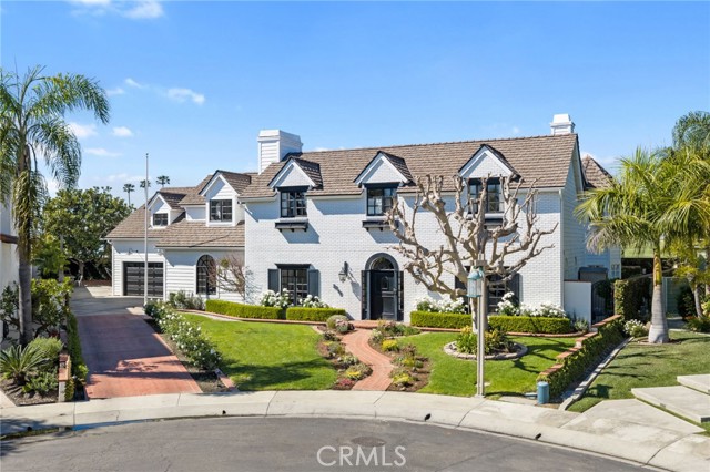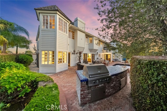 Behind the gates of Cyprus Cove, at the end of a cul-de-sac, sits a timeless Stanford Colonial just moments from the beach. Defined by classic brickwork, elegant symmetry, and architecture that never goes out of style. A brick pathway leads to a welcoming Dutch door and gracious entry, where black-and-white checkered marble floors, soaring ceilings, and custom solid wood millwork set the tone for a residence rooted in heritage and design. Simple classical detailing and balanced scale create a sense of architectural integrity rarely found today. At the heart of the home lies a kitchen designed to stand the test of time. Evoking the elegance of Colonial Revival architecture, it features striking black-and-white marble floors and countertops, dual Sub-Zero refrigeration, an expansive island, and a dramatic 60-inch Garland range. The main level unfolds into beautifully proportioned living spaces, including formal living and dining rooms, a spacious family room, media room, and a distinctive poker parlor with wet bar—ideal for both everyday living and elevated entertaining. Two staircases lead to the private quarters, where the primary suite offers a fireplace, generous walk-in closet, and ensuite bath, complemented by two additional bedrooms and a second-floor family room. A third staircase leads to two additional bedrooms and a full bath, offering a sense of separation ideal for guests, extended family, or flexible living. Outdoors, generous brick patios and an in-ground jacuzzi create a relaxed coastal retreat, surrounded by mature landscaping and a private backyard setting. A rare side yard offers potential for a sports court or additional parking for a boat or RV. Residents of Cyprus Cove enjoy private beach access, a clubhouse, tennis courts, park, and pool—all just minutes from world-famous Trestles surf break, downtown San Clemente, and the coastal beach trail. Classic in spirit, rich in character, and quietly luxurious, this iconic Stanford Colonial features soul, scale, and enduring appeal.