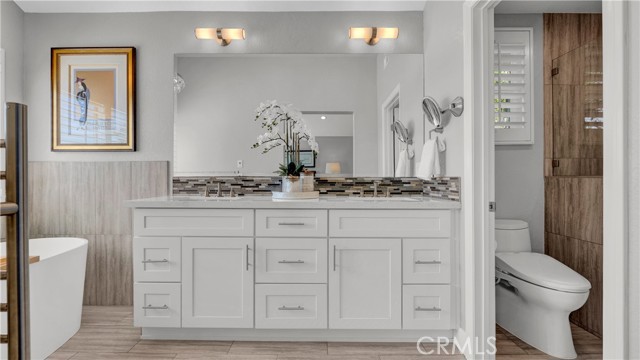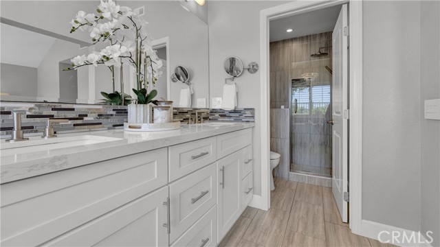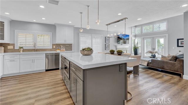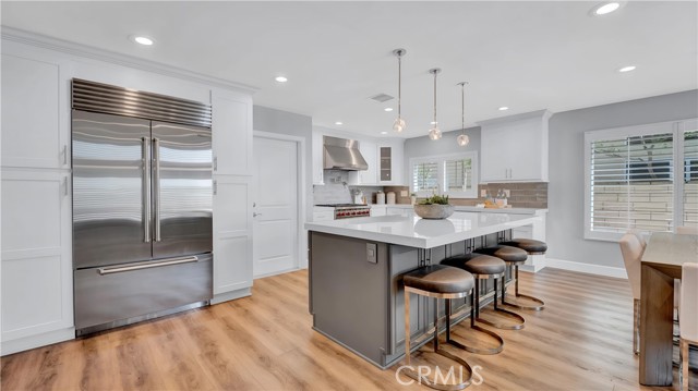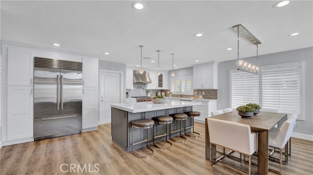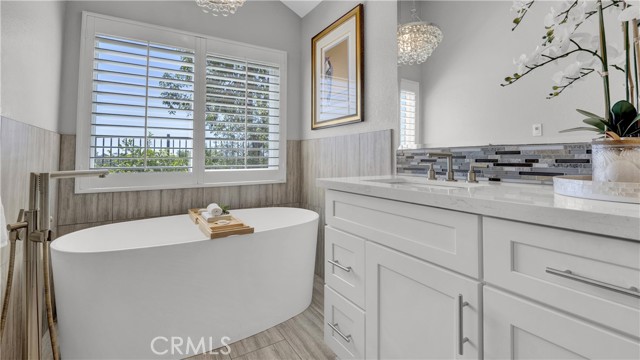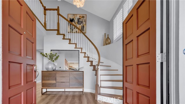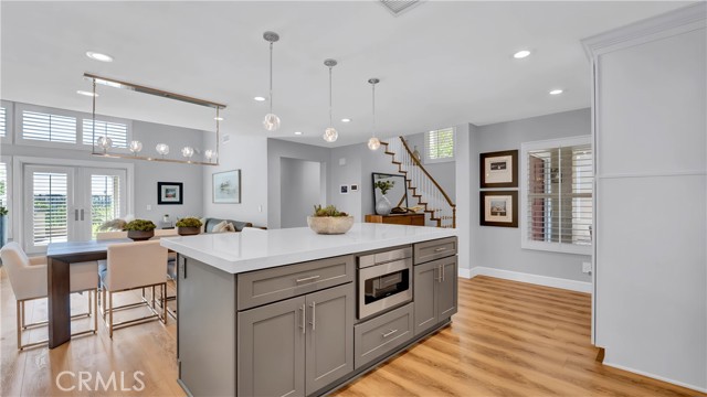 Beautifully reimagined and meticulously maintained, this fully remodeled residence is ideally situated on a quiet cul-de-sac and showcases a highly sought-after main-floor primary suite. Offering three bedrooms, 2.5 bathrooms, and a spacious loft with the potential to be converted into a fourth bedroom, the home effortlessly blends functionality with sophisticated design. Thoughtfully curated with no expense spared, the open-concept floor plan is both inviting and refined. Soaring ceilings in the main living areas create an airy, light-filled ambiance, while the chef’s kitchen serves as the heart of the home—featuring a generous center island, top-of-the-line Wolf appliances, Sub Zero Built in Fridge, and premium finishes—perfectly suited for both everyday living and elevated entertaining. The expansive living and dining areas flow seamlessly together, enhanced by a built-in audio system for an immersive experience. The main-level primary suite is a private retreat, further elevated by high ceilings, a custom-designed walk-in closet, and a spa-inspired bathroom featuring a freestanding soaking tub. Upstairs, two generously sized bedrooms are complemented by a large, versatile loft space, along with a beautifully remodeled bathroom showcasing a sleek walk-in shower. Additional enhancements include luxury vinyl flooring throughout, designer Restoration Hardware lighting, a tankless water heater, Water softener system, Security System, Tesla EV Charger and a custom-built laundry area with a utility sink in the garage. Ideally situated in the coastal community of Laguna Niguel, just minutes from world-class beaches, this home offers access to scenic walking and biking trails, as well as two community tennis courts—all with low HOA dues. This is Southern California living at its finest—where style, comfort, and location come together seamlessly.