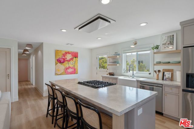 Experience the ultimate in coastal chic in this beautifully renovated home in Malibu's iconic Point Dume Club, where residents enjoy exceptional amenities, sweeping sunset skies, and close proximity to one of the most spectacular stretches of coastline in Southern California. This rare four-bedroom, three-bath residence has been thoughtfully remodeled from top to bottom, with extensive upgrades including new electrical, plumbing, appliances, tankless water heater, furnace, flooring, and central air conditioning. Five separate entrances are fitted with extra-wide Dutch doors, allowing fresh ocean breezes to flow easily throughout the home and enhancing the indoor-outdoor Malibu lifestyle. The bright open-concept kitchen is both inviting and functional, featuring soft sand-toned finishes, oatmeal-hued quartz countertops, and elegant custom cabinetry. A built-in coffee bar offers a charming and practical touch, providing space to keep small appliances neatly tucked away. Each bedroom offers its own distinctive character and flexibility. One includes a private entrance and sunny front patio, ideal for guests, a home office, or creative space. Another features a roof hatch accessed by a sturdy ladder, opening to panoramic ocean views, starry nights, and Malibu's legendary sunsets. A third bedroom includes its own exterior entry along with built-in desk and shelving details that echo the home's custom craftsmanship. The primary suite opens to the expansive outdoor area through Dutch doors and features a walk-in closet with solar-tube lighting along with a spa-like bath highlighted by a soaking tub in ocean-inspired tile. Outside, the generous wraparound yard offers multiple areas for dining, entertaining, and relaxing, along with a storage shed, vegetable garden, and plenty of room for surfboards and beach gear. The property includes parking for two cars plus a golf cart, with EV-ready capability. Residents of Point Dume Club enjoy gated entry, a recently updated clubhouse, heated pool and spa, sauna, playground, dog run, tennis and basketball courts, and beautifully maintained grounds. Nearby shopping and dining options include Pavilions, SunLife Organics, Cafe de la Plage, Lily's Malibu, and more -- all just moments away. A turnkey opportunity to enjoy the ease, beauty, and relaxed sophistication of Malibu life.
