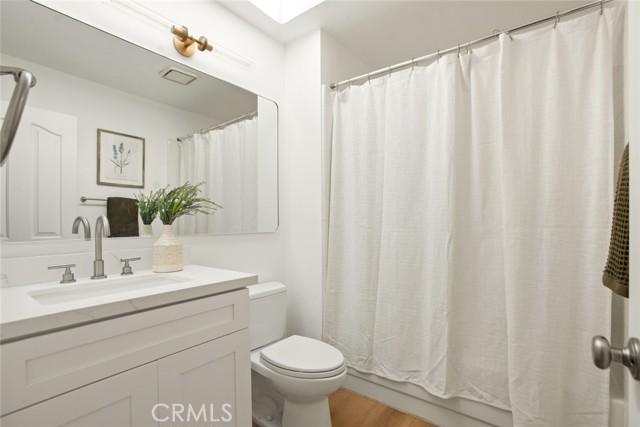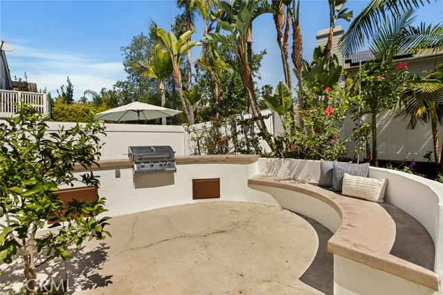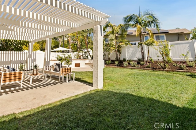 Experience the best of coastal Orange County in this captivating Cape-Cod inspired home, ideally situated just four miles from the beach and Dana Point Harbor in the desirable Summerwalk community of Laguna Niguel. Style and charm converge within this inviting residence offering approximately 1,881 square feet with three bedrooms and two-and-one-half baths. From the moment you arrive, verdant new landscaping and a charming brick pathway guide you to a welcoming blue front door. Inside, the home showcases thoughtful design details including vaulted ceilings, designer lighting, and wide-plank luxury vinyl flooring throughout. The formal living room is centered around a brick fireplace with wood mantle creating a desirable space for gathering with family and friends. The adjacent dining area is enhanced by serene garden views through a large window and sliding doors that open directly to the backyard, blending indoor and outdoor living. Open to the family room, the upgraded kitchen offers Taj Mahal Quartz countertops, white shaker cabinetry, a peninsula island with seating, brass fixtures, and a suite of premium LG appliances including a side by side InstaView refrigerator, oven, convection oven/microwave, cooktop and dishwasher. A newly redesigned powder room adds a stylish touch, showcasing botanical wallpaper, sconce lighting, and a wood vanity with a quartz countertop for a chic, designer-inspired feel. Upstairs a spacious primary retreat boasts vaulted ceilings, a walk-in closet, and ensuite bathroom with double sink Quartz top vanity, soaking tub and separate glass enclosed shower. The spacious primary suite serves as a private retreat with vaulted ceilings, a walk-in closet, and an ensuite bath complete with a dual-sink quartz vanity, soaking tub, and separate glass-enclosed shower. Two generously sized secondary bedrooms with mirrored closets and a full bathroom with skylight complete the upper level. Outdoor living is equally inviting, with newly landscaped front and backyards, lush grassy areas, a large pergola, and an outdoor kitchen featuring a sink, brand-new BBQ, and built-in bench seating. Paid solar system adds energy efficiency to the home’s impressive features (owners’ current electric bill is less than $10 per month). Residents of Summerwalk benefit from direct access to the Salt Creek Beach Trail, along w/ close proximity to top-rated schools, shopping, dining, beaches, world renowned resorts and a wide range of recreational opportunities.