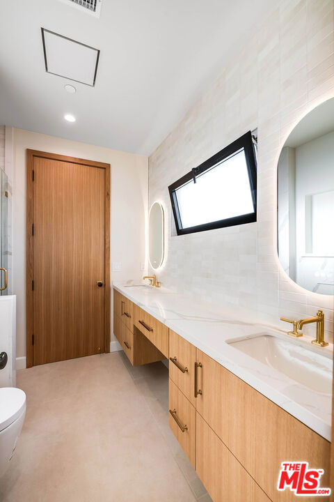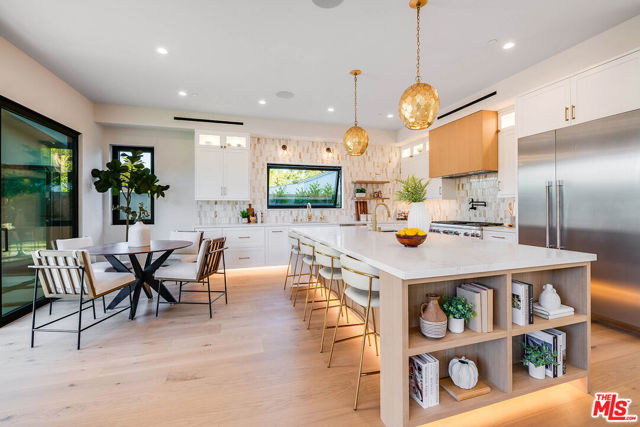 Set on a coveted street in Valley Village, this newly constructed residence is a striking expression of modern luxury and design. Spanning approximately 4,000 square feet, the main residence showcases five generously scaled bedrooms and four and a half bathrooms, complemented by a detached one bedroom, one bathroom ADU that serves as a true extension of the property, offering flexibility as a private guest residence, executive office, or bespoke wellness retreat. A dramatic entry begins with a statement pivot door, leading into an open layout defined by soaring ceilings, walls of glass, and premium European aluminum doors and windows that create seamless indoor outdoor living. The chef's kitchen is outfitted with custom cabinetry, Thermador appliances, Caesarstone quartz countertops, and striking onyx tile backsplash, flowing effortlessly into the main living spaces designed for both everyday comfort and elevated entertaining. Throughout the home, curated finishes include custom millwork, Visual Comfort lighting, and Walker Zanger tile. The backyard is a true retreat, featuring a resort style pool and spa with Jandy wireless controls, a custom designed BBQ and entertaining area, paired with a heated covered patio for seamless year round enjoyment. Upstairs, the primary suite serves as a private escape with a spa caliber bath featuring Newport Brass fixtures and a custom walk in closet, along with a private balcony. Three additional bedrooms are thoughtfully positioned, complemented by a second balcony that enhances natural light and indoor outdoor flow.A refined, design forward home that delivers luxury, craftsmanship, and presence in one of Valley Village's most desirable neighborhoods.