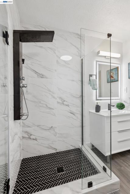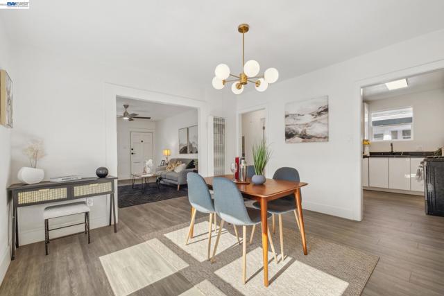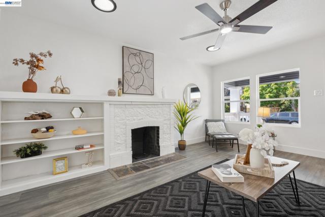 Welcome to 417 Lincoln Ave, a renovated 2-bed, 1-bath bungalow in Alameda’s sought-after West End. Built in 1923 and updated throughout, this 1,029 sq ft home blends vintage charm with modern style. The exterior features crisp blue siding, a bold red door and a welcoming front porch. Inside, the bright living room offers luxury vinyl plank floors, a white brick fireplace, built-in shelving, recessed lighting and contemporary finishes. The dining area is filled with natural light, and the updated kitchen includes sleek white cabinets and newer appliances. Both bedrooms are spacious and serene, and the stylish bathroom features a glass-enclosed shower and a modern vanity with backlit mirror. The private backyard includes mature trees, a patio for entertaining and gated side access. Upgrades include a newer water heater, updated plumbing and electrical, an upgraded sub-panel and dual-pane windows. Located near top schools, parks and Webster St shops and dining, this turnkey gem is move-in ready.