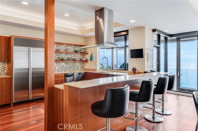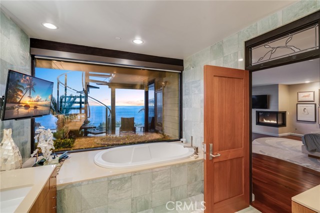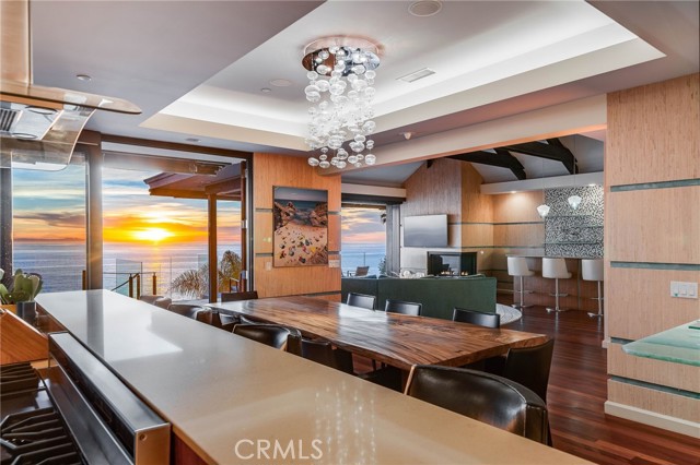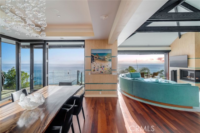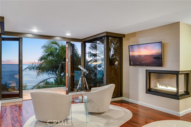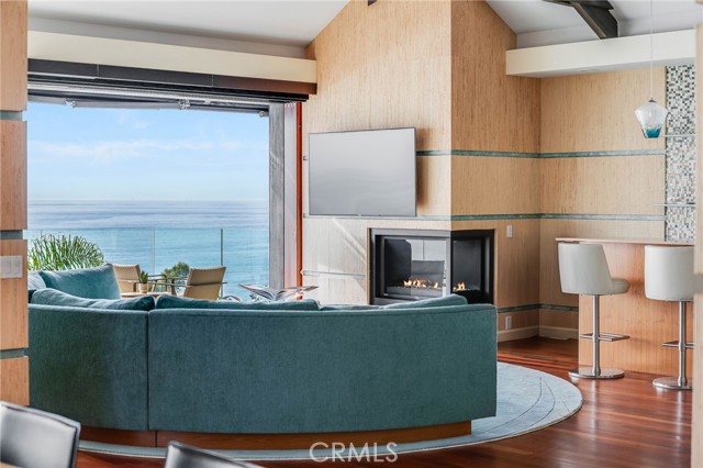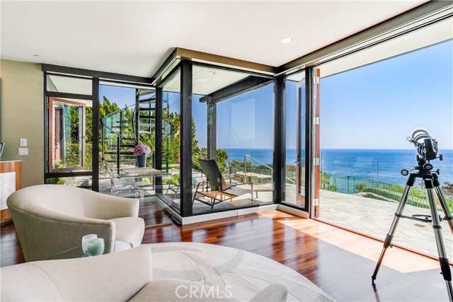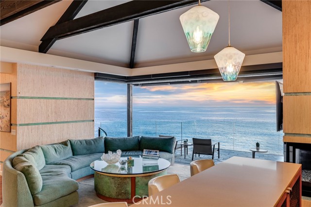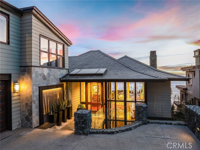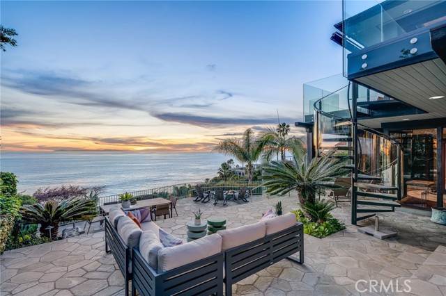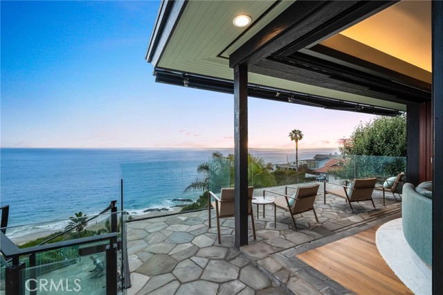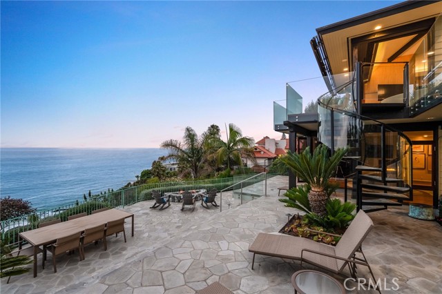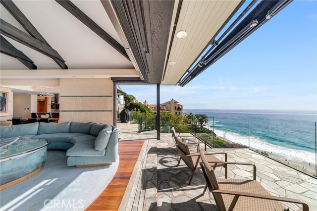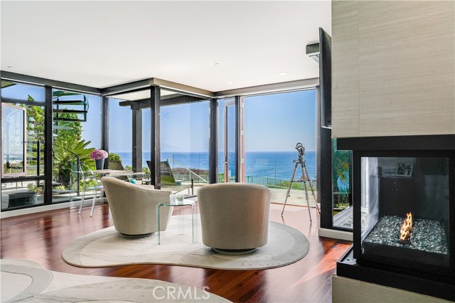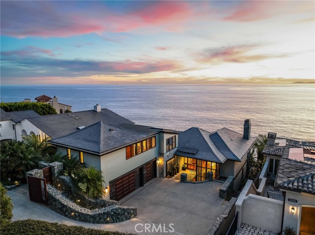 How amazing to have front-row seats to the ever-changing theater of the Pacific Ocean - a unique performance every day and night, where the sun melts into the horizon, and dolphins drift past like unannounced guests. The oceanfront estate at 32091 Coast Highway offers these seats daily - a beautifully crafted, gated home with amenities that make leaving feel unnecessary. From the moment you arrive through the gated motorcourt, the home reveals itself slowly - glass, stone, and warm materials drawing your eye to the endless horizon. Walls of disappearing glass open nearly every space to terraces, breezes, and uninterrupted views. Entering the living level, finished in a soothing blend of luxurious textures and colors, frames the special oceanfront setting. Dining and a bespoke kitchen with top-line appliances are distinct from the living area yet visually open, presenting an incredible ocean-view sweep from this level. This space also includes a full bar, climate-controlled wine storage, and disappearing glass walls that open much of the level to the view terraces. The lower level hosts four en-suite bedrooms, including the primary suite - a generously sized retreat unto itself, with floor-to-ceiling glass and refined design detail, the architectural pedigree is on full display. The fifth bedroom, along with an office or gym, spa bath with steam and sauna, and a ‘sky terrace’ complete the upper level, offering separation from the main living spaces. As calming as the interiors are, it is the ocean view decks and terraces that captivate. Multiple levels of flagstone decks create intimate corners for morning coffee, sunset dinners, or evenings beside the crescent-shaped outdoor fireplace. Here, the ocean becomes part of daily life - its colors, sounds, and shifting light changing by the hour. The spaces invite large gatherings while offering intimate vignettes. In addition to the ‘front row’ seats to the Pacific, this property offers features not often found in oceanfront homes: oversized three-car garage with motorcourt, private gated drive/pedestrian access, generous space, abundant storage, meticulous care by the current owner, sauna and steam rooms, and the ability to easily lock and leave should you choose to travel (though, why would you need to?). This estate provides a VIP experience without compromise - an opportunity to acquire a stunning residence along one of the most beautiful coastlines in the world.