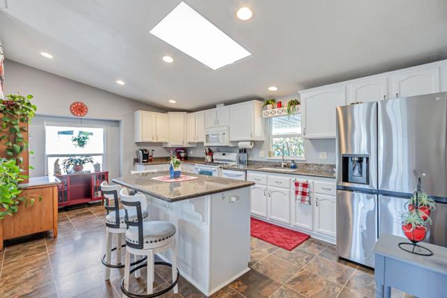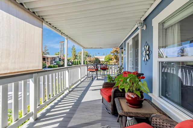 Discover the perfect blend of modern style and effortless living in this meticulously maintained 1644 sq ft manufactured home located in San Jose's most desirable 55+ senior community. The heart of the residence is a stunning chefs kitchen, featuring a sizeable central island, elegant granite countertops, newer frig and dishwasher, dual oven, and a bright skylight that illuminates the crisp white cabinetry. The beautiful laminate flooring flows seamlessly all through the spacious layout, leading you to a sprawling master suite complete with an oversized bathroom and a generous walk-in closet. A large, dedicated laundry room adds to the home's practical appeal along with custom UV honeycomb shades throughout and two comfortable guest bedrooms w/ a sleek guest bath . Outside, relax on the durable Trex wrap-around deck, perfect for entertaining guests or sipping coffee. The newer roof, designer exterior paint, roses and mature landscaping that surround the property offer undeniable curb appeal. Love to socialize? Join in on the many planned community dinners and functions, community pool, large clubhouse with ping pong & pool tables, dog park, and community garden. Just blocks from grocery stores, Oakridge Mall, Almaden Lake, and Highways 87 & 85 make this location unbeatable.