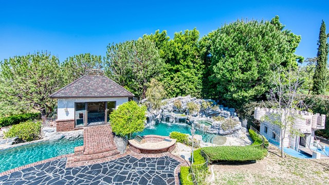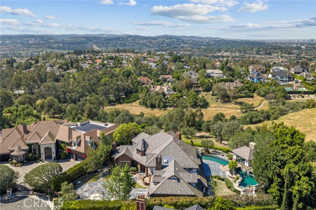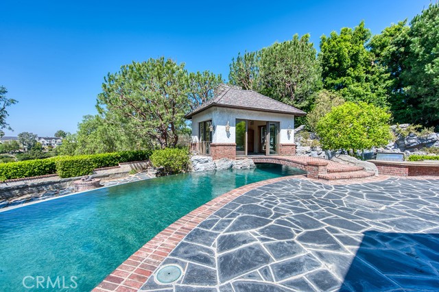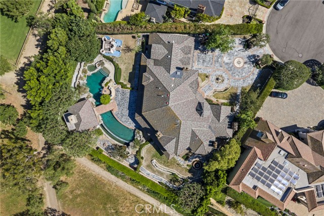 25962 Poker Flats offers a rare opportunity to own an exceptional estate where timeless craftsmanship and elevated design meet in a remarkably private setting. Tucked behind a gated driveway and framed by sweeping panoramic views, this residence blends grandeur with warmth at every turn. A dramatic two-story foyer introduces rich architectural details, from hand-crafted finishes to oversized fireplaces that anchor multiple living spaces and create an inviting old-world ambiance. At the heart of the home, a stunning great room showcases coffered ceilings, custom woodwork, and a statement fireplace—an ideal setting for both intimate gatherings and larger-scale entertaining. The gourmet kitchen is thoughtfully designed with high-end appliances, including a double oven, two dishwashers, and a Sub-Zero refrigerator, and flows seamlessly into the formal dining room and breakfast nook. A wine cellar and walk-in pantry enhance both function and style. The main level also features a privately situated guest suite with en-suite bath, a laundry room, and an additional full bath conveniently located near the pool for effortless indoor-outdoor living. An office and formal living room complete the first floor. Upstairs, a sweeping curved staircase leads to three spacious secondary bedrooms, each with its own en-suite bath and walk-in closet. The primary suite is a true retreat, highlighted by an oversized fireplace, a private balcony with sweeping views, and a spa-inspired bath complete with a custom sauna. Outdoors, an impressive 82-foot rock pool and spa with waterslide serve as the centerpiece, surrounded by lush landscaping, a BBQ center, and multiple areas for relaxation and entertaining. Across a charming bridge, a pool house with its own fireplace adds to the property’s unique appeal. With breathtaking views, exceptional privacy, and a setting designed for both tranquility and entertaining, this one-of-a-kind estate captures the essence of refined California living—and presents an incredible opportunity to elevate a MacGrath Custom home to its full potential. Residents also enjoy access to Nellie Gail Ranch amenities, including equestrian facilities, dining, fitness, parks, tennis, pickleball, a swim center, and year-round community events.