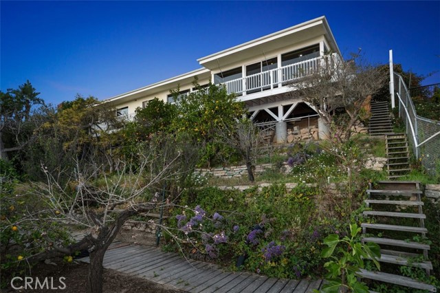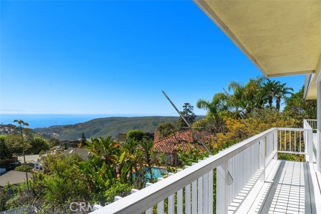 “Top of the World” truly describes this location in Laguna Beach. This single-level, approximately 2,000-square-foot house features three bedrooms and three bathrooms. It is situated on a spacious lot with lush landscaping and a paved driveway, offering a scenic coastal landscape and panoramic vistas. The home's elevated hilltop location provides expansive views of the Pacific Ocean and Catalina Island—a breathtaking sunset outlook from the scenic balcony. The interior boasts a spacious layout with vaulted ceilings, allowing for abundant natural light throughout. The primary bedroom is generously sized, with access to the scenic overlook. The home's thoughtful design and elevated placement create a sense of seclusion and tranquility while still being situated amidst the beautiful natural surroundings. Ideal for those seeking a serene retreat with stunning panoramic views. Hawks fly nearby as they enjoy the hills of Laguna Beach as well. Located within the highly regarded Laguna Beach Unified School District—known for its outstanding academics and celebrated arts programs.