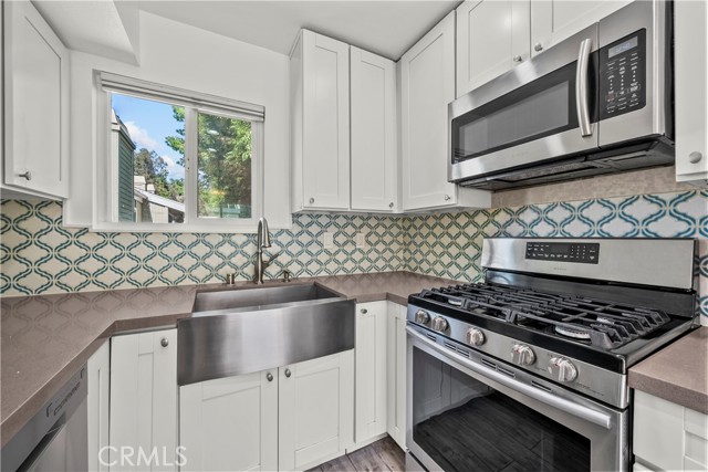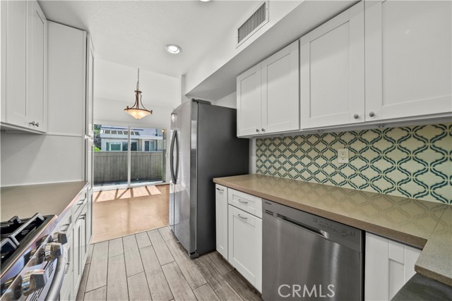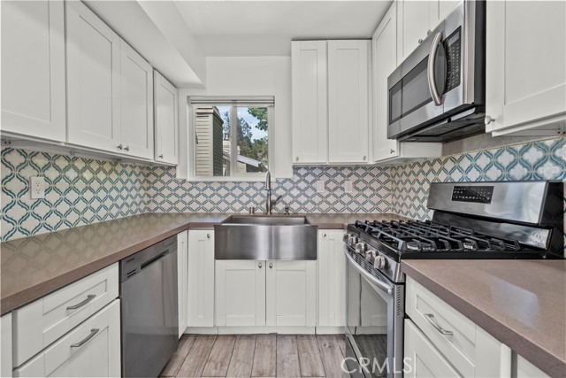 Welcome home to 22117 Burbank Blvd #5, a light-filled end unit townhome located in the well maintained Woodland Village community of Woodland Hills. This 2 bedroom, 1.5 bathroom residence offers 961 sq. ft. of comfortable living space along with an attached two car garage, providing both convenience and functionality. Step upstairs to find a bright and inviting living space featuring warm wood style flooring, abundant natural light, and a cozy fireplace that anchors the living room. The layout flows seamlessly to a private balcony, creating an ideal setting for both everyday living and relaxing outdoors. The kitchen offers a clean and updated design with white cabinetry, stainless steel appliances, a farmhouse-style sink, and a stylish backsplash. The adjacent dining area is filled with natural light, making it a comfortable space for both daily use and entertaining. Both bedrooms are well sized and filled with natural light. The full bathroom has been recently remodeled with modern finishes, providing a fresh and move in ready feel. Additional highlights include a brand new water heater and the convenience of an included washer and dryer. The Woodland Village community offers resort-style amenities including two pools, a spa, and a tennis court, all surrounded by mature landscaping. Conveniently located near The Village at Topanga and Ventura Blvd, this home is just moments from some of the area’s best shopping, dining, and entertainment. Exciting future project in the area is the Rams Village at Warner Center. A great opportunity for buyers looking for comfort, natural light, and a well-located home in a desirable community.