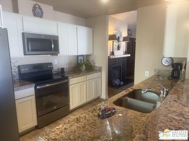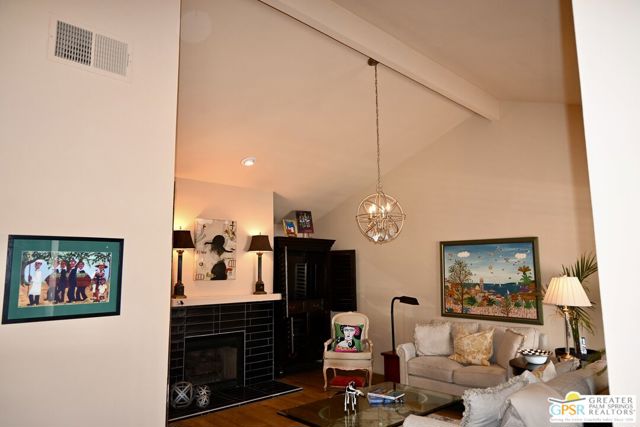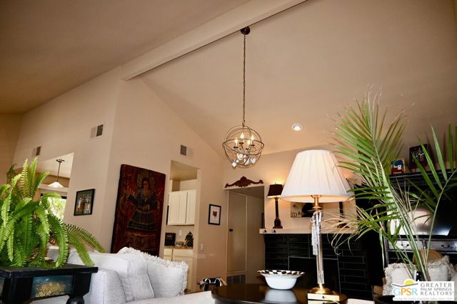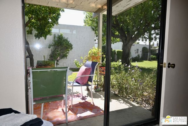 Sunshine Villas is mid-century modern architecture in a resort style setting. Designed by renowned architect Hugh Kaptur. This well-maintained community of beautifully landscaped grounds, has 4 pools, 4 spas, tennis and pickleball courts. A small dog park and direct entry to the walking trails of Prescott Preserve. This inviting home has seamless indoor-outdoor living. The living room features a high ceiling, a large window fills the space with natural light. The adjacent dining area offers direct access to the one-car garage. The kitchen provides ample storage, an adjacent pantry, recessed lighting with pendants above the breakfast bar. A slider to the side patio for convenient access to outdoor dining and barbecuing, ideal for entertaining or quiet enjoyment. The primary bedroom, has access to community greenspace and pool. Primary bath with dual sink vanity, patio access. Bedroom two has built in storage shelves for all your mementos. Perfect for full-time residence or seasonal getaway. HOA covers a lot of expenses, including cable, internet, earthquake and roof insurance. State mandated turf removal has been implemented and included in the HOA. Land Lease has been renewed, low monthly land lease until 2076! I look forward to seeing you!