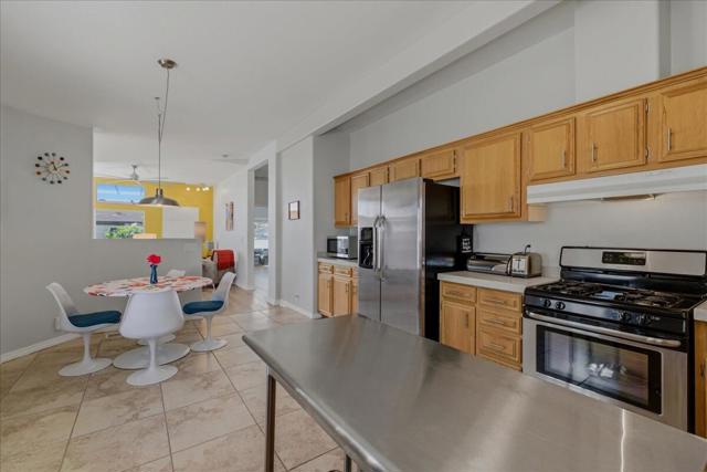 Your new desert home is here, with everything on your wish list! Updated, move-in ready, fully-owned solar, 2-car garage, and you own the land! This is one of the best and most affordable homes you will find in the greater Palm Springs area. This beautiful home has been impeccably maintained and lovingly cared for by its owners. With a great, livable layout and tall ceilings, this home is bright and spacious. The clerestory windows in the open-concept living/dining area fill this home with welcoming light.The eat-in kitchen is large with good counter space and lots of cabinets. Each bedroom is spacious and accommodates additional seating for flexible use of the spaces. And the primary bedroom suite has a walk-in closet. The bedrooms are on opposite ends of the home, providing ideal separation between you and your guests. A separate laundry room is well-positioned between the bedrooms. Outside are multiple areas, easily configurable for how you want to live. The rear patio is ideal for enjoying the indoor/outdoor desert lifestyle. The side patio and yard are great for dining and entertaining. And if you have pets, they can enjoy it too! The entire home has just been repainted and is ready for you to move right in! Vista Montana offers resort-style amenities in an exclusive 55+ community with a low HOA of just $329. The community is guard-gated and has a wonderful clubhouse with newly updated gym/workout room, 2 sparkling pools, 2 spas, dog parks, green space, and well-maintained roads and walkways throughout. Palm Springs is a short drive away! Do not miss this opportunity. Homes like this do not come along often! Call to see it TODAY.