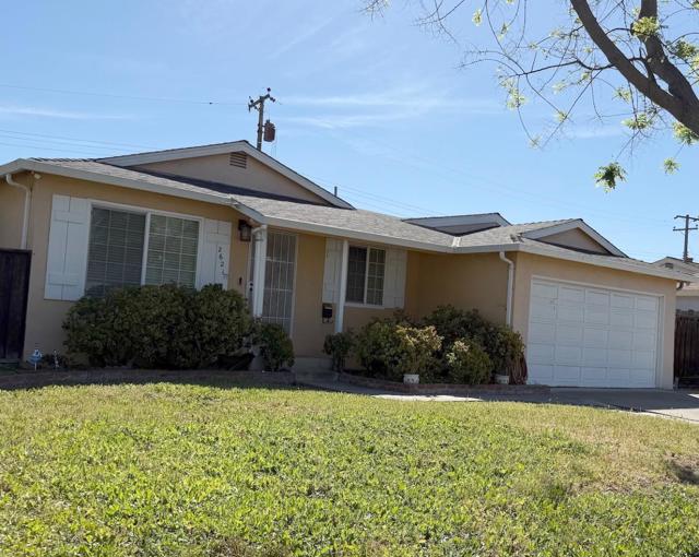 This is a wonderful opportunity to put your heart and creativity into this bright and spacious home. The huge living room is filled with natural light, enhanced by double-pane windows throughout the house and original hardwood floors that extend into the bedrooms. The kitchen features beautiful cabinets with slide-out drawers, durable Corian countertops, and a skylight that floods the space with abundant natural light. Tile flooring in the kitchen, bathrooms, and family room adds for easy maintenance.A French door opens into a permitted, sunken bonus family rooma space perfect for relaxing or entertaining. This area also includes an additional bonus bedroom with a built-in closet, ideal as a fourth bedroom, home office, or den. LED recessed lighting throughout the living room, kitchen, and bonus room adds a modern touch. Outside, enjoy a covered patio overlooking a huge backyard with productive fruit trees, including persimmons, lemons, and cherimoya. Conveniently located near shopping (Costco), major tech employers (NVIDIA, Apple Park), schools, and everyday amenities. Added savings bonus of paying Santa Clara utilities versus PGE. This home is being sold as-is and the sellers are motivated.