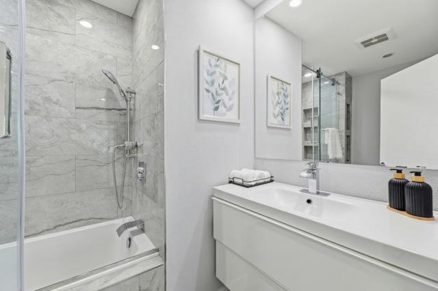 Rare 2BD/2.5BA Townhome with Private Green Backyard + EV-Ready Parking at this price point. Don't miss out! Beautifully upgraded home offering 1,125 sq. ft. of well-designed living space in a quiet community location. The spacious living room features a newly added electric fireplace and flows into the dining area, creating an open and functional floor plan. Step outside to a private backyard surrounded by lush greenery perfect for relaxing. A powder room with in-unit washer/dryer adds convenience, while a smart mini office under the stairs provides a flexible work-from-home space. The kitchen showcases glossy modern cabinetry, quartz countertops, stainless appliances, and an exterior-vented exhaust. Upstairs, two spacious primary suites offer updated en-suite bathrooms, including a ceiling-mounted rain shower, along with upgraded closet systems. Additional features: recessed LED lighting, upgraded double-pane windows, a water softener, smart lock, thermostat, and motion-activated bathroom vent. 2 assigned underground parking spaces, one with 240V EV outlet. Resort-style and gated community. Conveniently located near major tech employers, Costco, with close proximity to Caltrain and Santa Clara University. Top rated Middle and High School.
