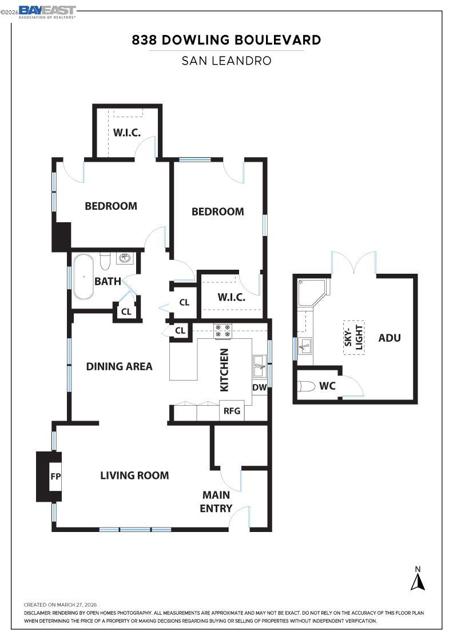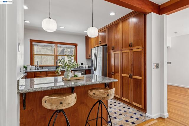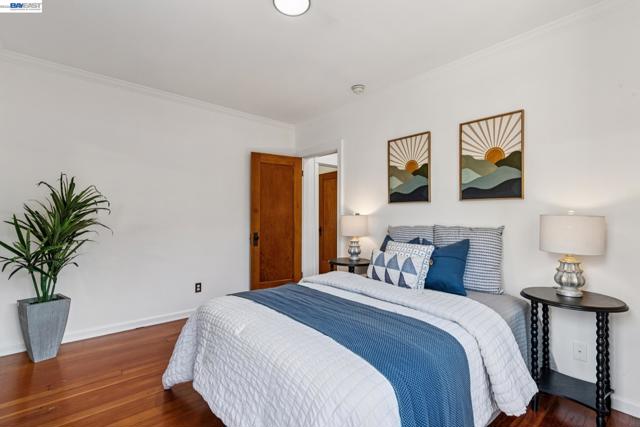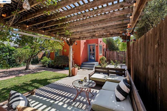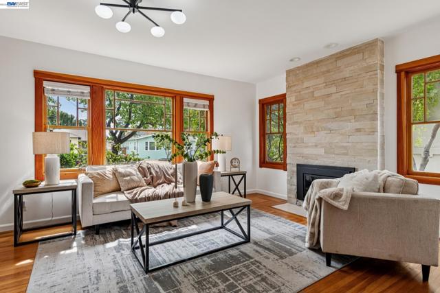 Experience the perfect blend of contemporary updates & craftsman charm in this stunning single-story Broadmoor home. Nestled on a quiet, tree-lined street, the 2BR/1BA main residence shines w/ original hardwood floors, exposed wood beams, & a light-filled living room anchored by a feature stone wall & gas fireplace. The heart of the home is a beautiful kitchen equipped w/ brand-new stainless appliances & a gas stove, while the vintage-inspired bathroom offers a serene retreat w/ a classic clawfoot tub & wainscoting. Beyond the interior, a secured gate leads to a permitted detached ADU (1BR/1BA) featuring a kitchenette—perfect for a home office or guest suite. The private backyard sanctuary "wows" w/ a tiled patio, built-in seating & an arbor draped in fragrant jasmine near a productive lemon tree. Recent updates include a newer roof & fresh paint. Perfectly situated for modern lifestyles, this home offers easy access to BART, highways 580 & 880, groceries, & the vibrant shops & dining of downtown San Leandro. You'll be just moments from local parks, Farrelly Pool, schools, Estudillo Estates, & the endless outdoor recreation at Lake Chabot Regional Park.