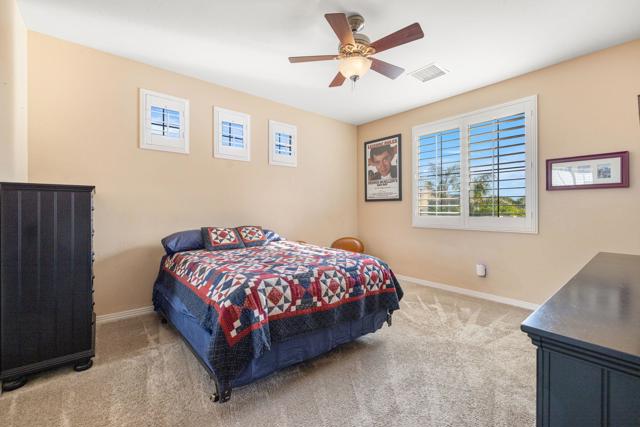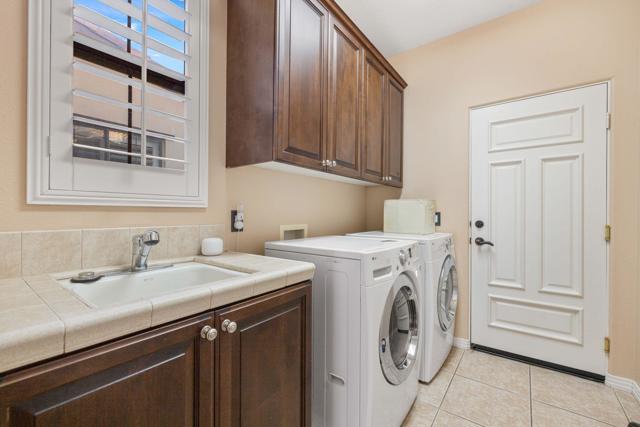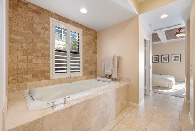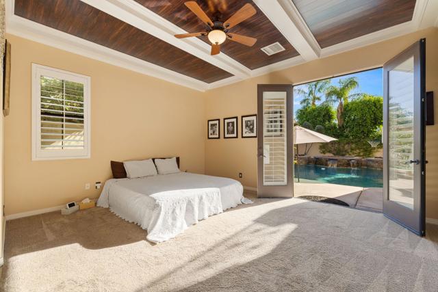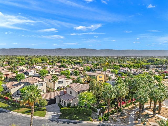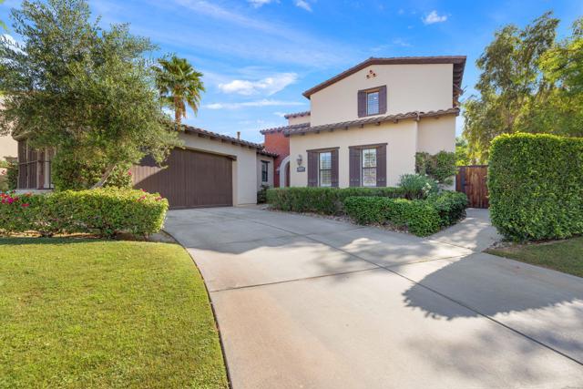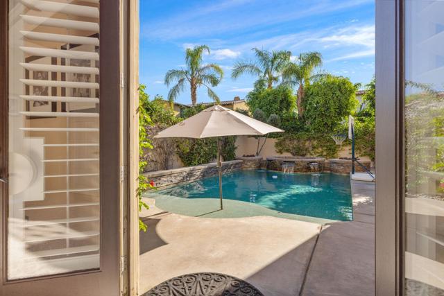 Welcome to one of the most distinctive homes in the prestigious gated community of La Cantera--where timeless design meets elevated desert living. Thoughtfully customized from top to bottom, this residence showcases rich wood-planked ceilings, striking brick fireplace accents, and curated built-ins that add both warmth and character throughout.Designed for both everyday comfort and memorable entertaining, the home features a formal dining room, stylish wet bar, and plantation shutters that complement the refined interior aesthetic. The chef's kitchen is a true showpiece, appointed with premium Thermador stainless steel appliances, generous prep space, and seamless flow into the main living areas.The highly desirable floorplan offers two bedrooms on the main level, including a stunning primary retreat that feels like a private sanctuary. Upstairs, you'll find two additional bedrooms and a spacious loft, along with double French doors that open to a breathtaking balcony--perfect for soaking in sweeping southwest mountain views. Step outside to your own private resort-style backyard, where a large covered patio overlooks a beautifully designed pool with an oversized Baja shelf, spa with dual fire features, and a fully equipped outdoor kitchen. Lush landscaping and mature fruit trees complete this serene outdoor escape, creating a setting that is as inviting as it is unforgettable. Residents of La Cantera enjoy a private, gated setting known for its tranquil streets, scenic surroundings, and pride of ownership. Ideally situated in the heart of La Quinta, this home offers convenient access to world-class golf at nearby courses within PGA West, upscale shopping and dining at Old Town La Quinta, and endless outdoor recreation including hiking, biking, and nearby equestrian trails. Whether you're seeking a full-time residence or a luxurious desert retreat, this location truly captures the best of the Coachella Valley lifestyle.