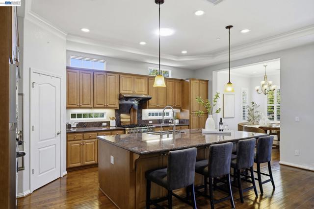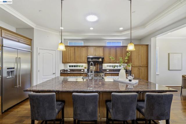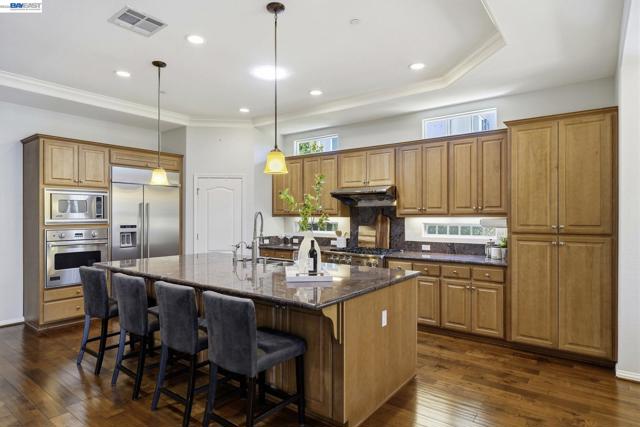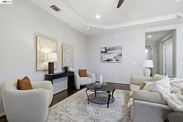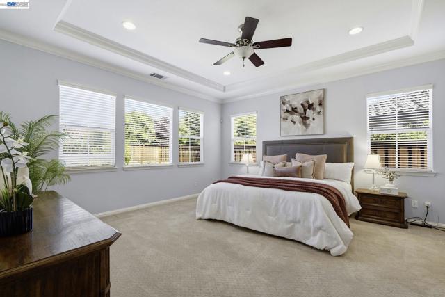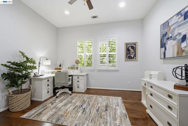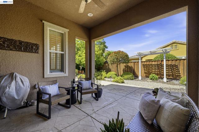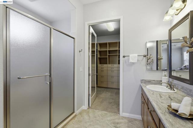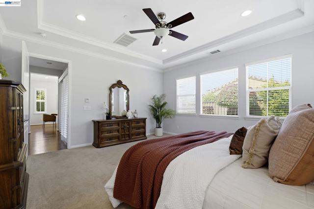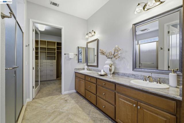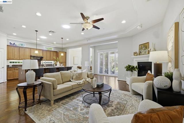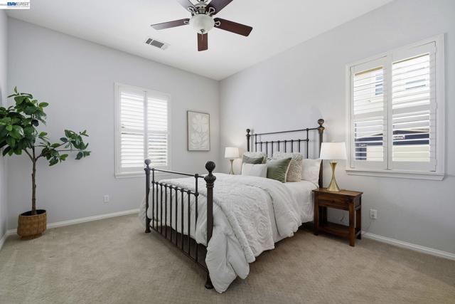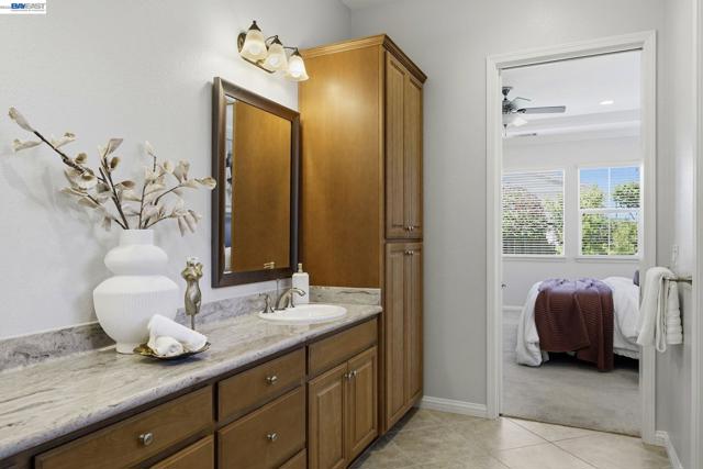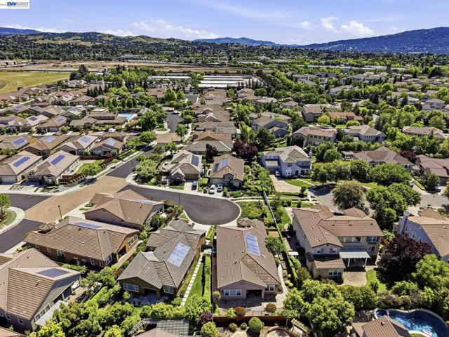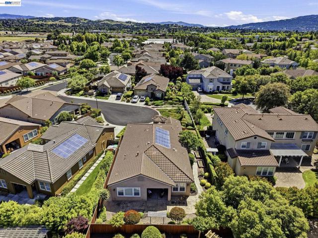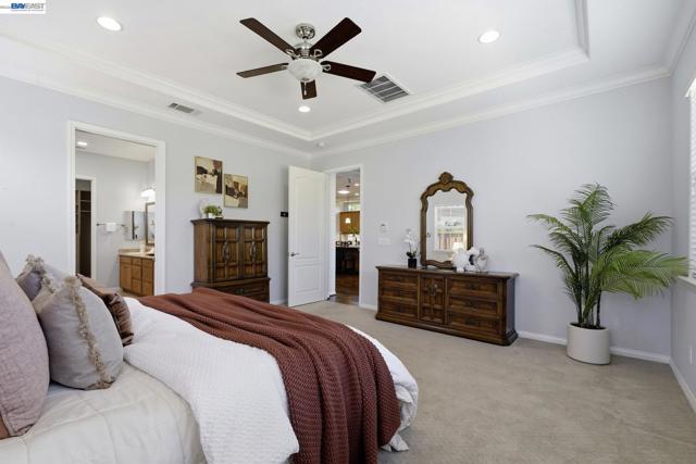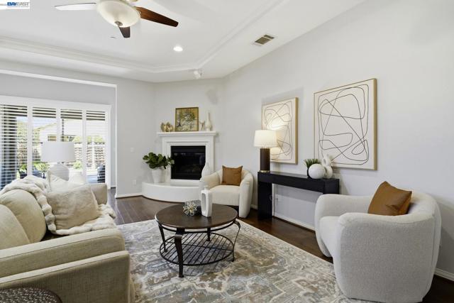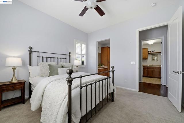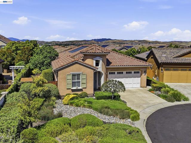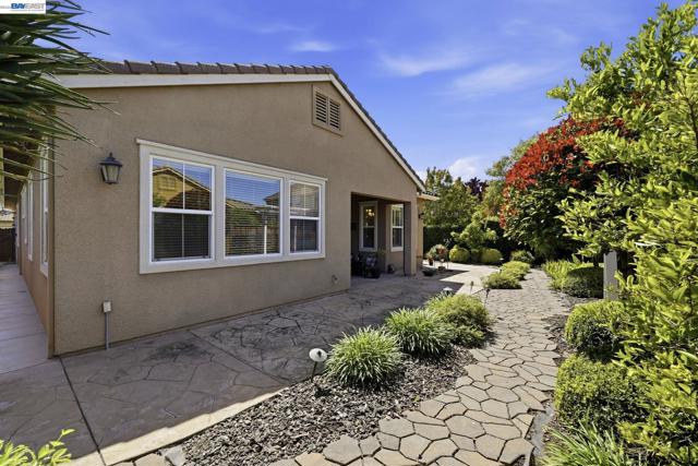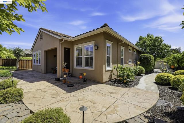Luxury resort living at The Village, in the 55 and up community. The community features a clubhouse, gym, library, card room, outdoor barbecue, Bocce ball courts, pool and Spa. This gated community offers security to homeowners. This Mediterranean style home is all on one level, features include a title roof, solar panels, a tankless water heater and a two car garage.The kitchen boasts granite counters, a large island, pantry and stainless steel appliances. The great room has a gas burning fireplace and wood floors. The spacious primary bedroom suite includes carpeting and a walk-in closet. Private court location with a extra large lot. This home offers three bedrooms and two and one half bathrooms. Don't miss this highly upgraded home built by Ponderosa home builders.
