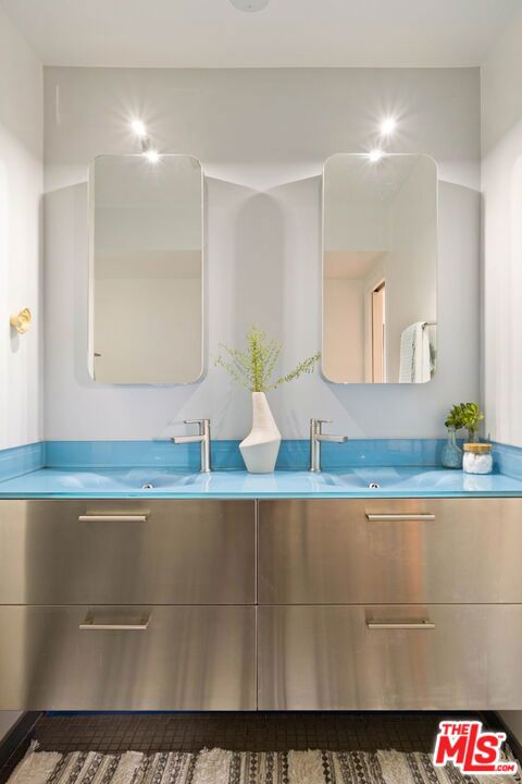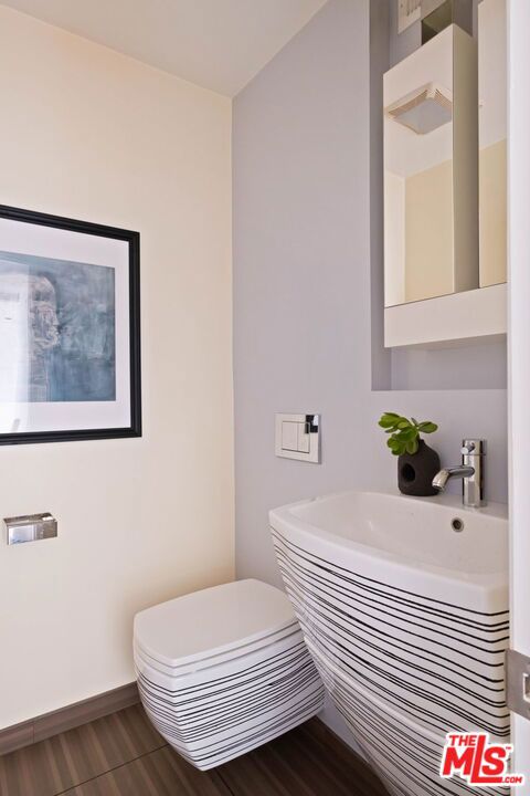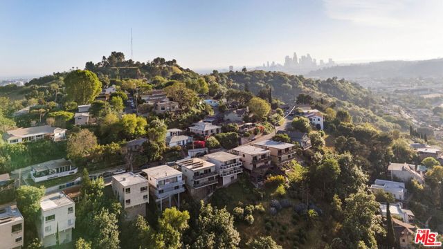 Perched among the treetops in Montecito Heights, this stylish home has high ceilings and is bathed in natural light. Expansive windows feature spectacular views of Mount Washington, the Hollywood Hills and the Verdugo Mountains. The main level features warm hardwood floors and a split-level living area with an elevated dining room and a well-appointed kitchen. A powder room and laundry complete the upper level, along with the full-sized attached two car garage. Downstairs find four bedrooms and a full bath, including one oversized primary that could also serve as a recreation room or home studio. The large lot features a row of mature cypress trees and offers enormous potential for the intrepid gardener.