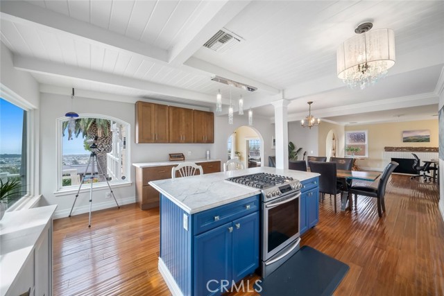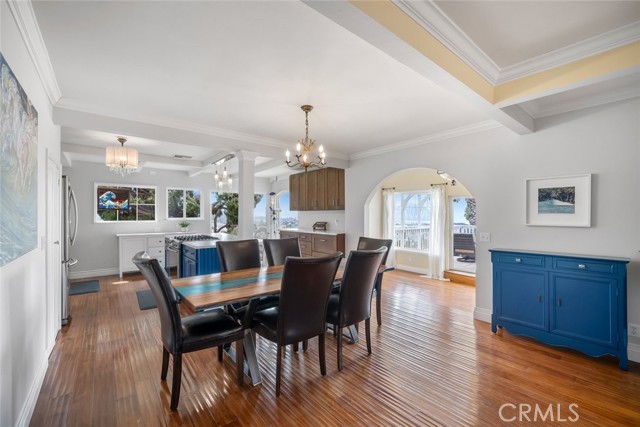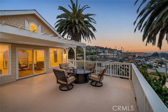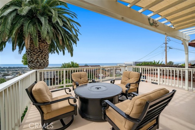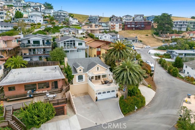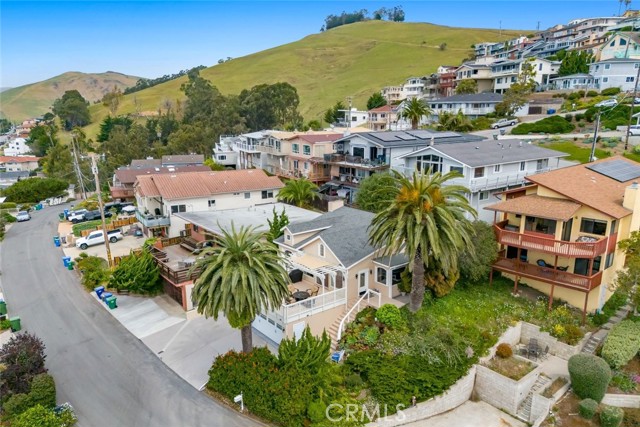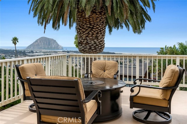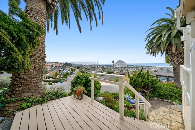Welcome to Morro Bay! Upon entering this stunning home, you’ll enjoy single-level living with two bedrooms and two baths across 1,505 square feet of living space on a 4,268-square-foot lot, plus a 400-square-foot full ocean-view deck offering 180° panoramic views of the Pacific Ocean and Morro Rock. This home features 18ft ceilings in the entry and family room. An open layout connects the living, dining, and kitchen areas through archways. This space features mahogany wood flooring throughout, crown molding, and abundant natural light from large front-facing windows. Enjoy the panoramic view of the ocean and Morro Rock while cooking in the kitchen, relaxing in both family rooms, dining, and even from the entryway. The living room includes a fireplace and a flexible workspace area. The recently remodeled kitchen features a center island with a gas range and bar seating, marble countertops, pendant lighting, a skylight, white cabinetry with glass-front uppers, built-in storage, and a farmhouse sink. The dining area, surrounded by windows, includes a decorative chandelier. Both bathrooms have been updated with distinctive finishes. One features iridescent glass subway tile, abalone-accented flooring, and a modern faucet. The second includes textured white tile, agate accents, coordinated lighting, and updated fixtures. A finished attic provides additional work/storage space. The 400sf ocean-view deck extends over the garage, offering a spacious area for outdoor use with unobstructed views. The size of this deck is grandfathered in. Additional features include inside laundry, a two-car garage, three parking spaces outside and a flat area that could be used for an RV, low-maintenance landscaping and a three-way reverse osmosis drinking water system. Information not verified.