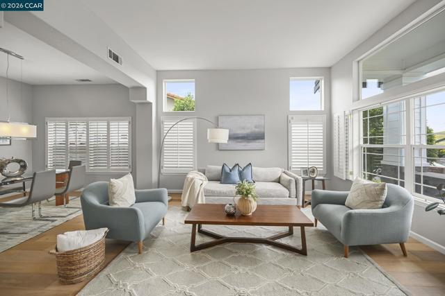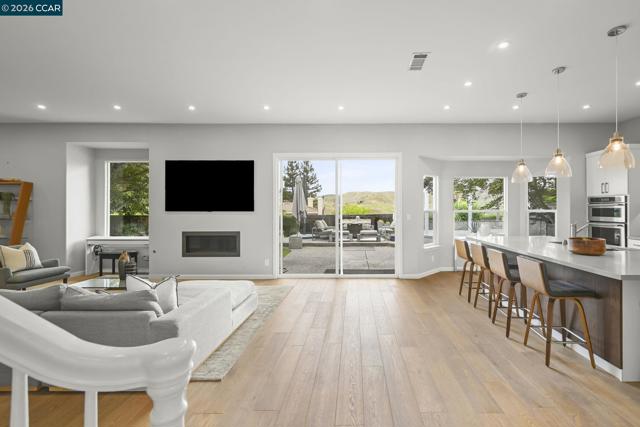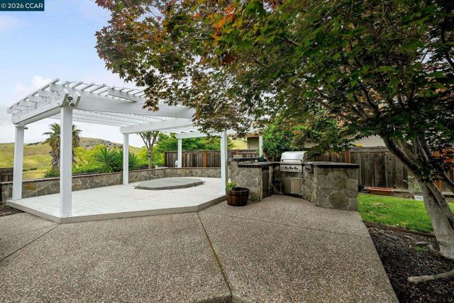 Absolutely Beautiful! Set against a backdrop of sweeping views and filled with natural light, this beautifully updated residence offers the perfect blend of style, comfort, and functionality.Soaring ceilings and expansive windows create an airy, elevated feel from the moment you enter. The thoughtful floor plan features five spacious bedrooms, 2.5 baths, and flexible living spaces designed for today’s lifestyle.The heart of the home is a fully renovated kitchen with quality finishes, seamlessly opening to inviting living areas with rich hardwood floors, a custom staircase, and a striking fireplace—ideal for both everyday living and entertaining. Updated bathrooms and a beautifully finished laundry room with marble counters and designer tile add a refined touch throughout.Outside, the home truly shines. A fully refreshed exterior with new wood siding, stone accents, and modern lighting creates standout curb appeal, while the backyard offers a private retreat with a hot tub gazebo and peaceful views. Ideally located near Oakhurst Golf Club, community pool, and scenic hiking trails, this home offers a rare combination of tranquility and convenience. Additional highlights include an epoxied garage with EV charger, newer HVAC. BEAUTIFUL