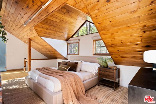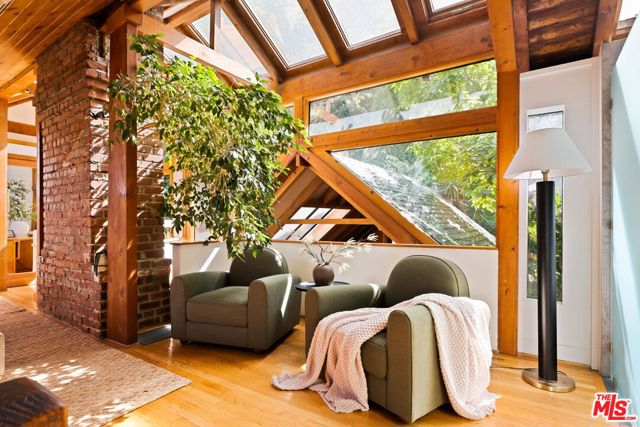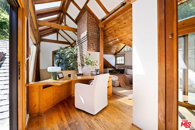 Tucked away in the serene hills of Beverly Hills, 2030 Benedict Canyon is a rare cottage-style retreat that feels worlds away from the city, yet minutes from everything. This one-of-a-kind residence blends timeless charm with thoughtful design, featuring soaring vaulted ceilings, custom built-ins, and an abundance of natural light pouring in through beautifully placed skylights. Every space in the home is warm, inviting, and rich with character creating a true sanctuary atmosphere. The architectural details and craftsmanship set this property apart, offering a unique alternative to traditional modern estates in the area. Surrounded by nature, the property offers three private outdoor deck areas perfect for entertaining or quiet relaxation, all set against a backdrop of lush greenery. A tranquil stream and pond further elevate the experience, creating a peaceful, storybook setting rarely found in Los Angeles. A hidden gem in one of the city's most iconic canyons, 2030 Benedict Canyon is ideal for those seeking charm, privacy, and a lifestyle that feels like a retreat without ever leaving the city.