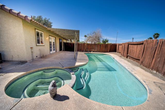 Absolutely beautiful move-in ready condo featuring 2 bedrooms and 2 bathrooms (1 full and 1 half). This well-maintained home offers tile flooring throughout and a bright, open living room with a cozy fireplace.The upgraded kitchen showcases granite countertops, ample cabinetry, and a functional layout that flows seamlessly to the backyard--perfect for indoor-outdoor living. Step outside to your private retreat featuring a sparkling pool and spa, ideal for relaxing or entertaining. A true gem offering comfort, style, and resort-style living--don't miss this opportunity to own in desirable Indio.