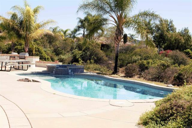 Single-level, Most popular Hesten floor plan by Michael Crews situated in Skyridge Estates. 2,748 sq ft of comfortable, functional living. Formal double door entry, Living and Dining area as you enter with Primary and bedrooms split on each side of home for privacy, a spacious great room kitchen with a center island that opens to Family room, perfect for entertaining. Pool bath, laundry and 4 car attached garage, tile roof are some of the great features. Property is fenced and gated, built-in outdoor kitchen, extensive hardscape, pool & spa with slide for those fun hot days, and relaxing view poolside. Practical features include RV parking, room to build a shop, plenty of extra parking and Cul-De-Sac location. Solid condition, just needs modern updates to make it shine. Ideal for buyers seeking single story convenience with excellent indoor/outdoor flow.