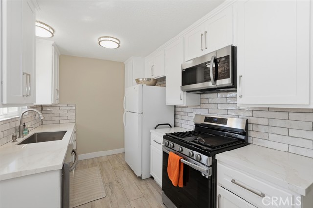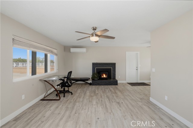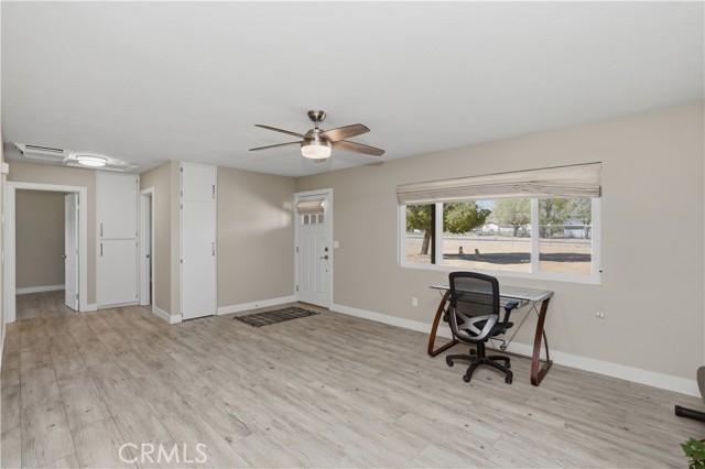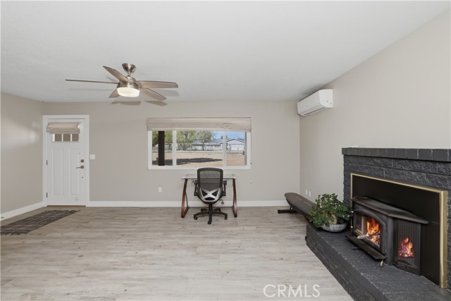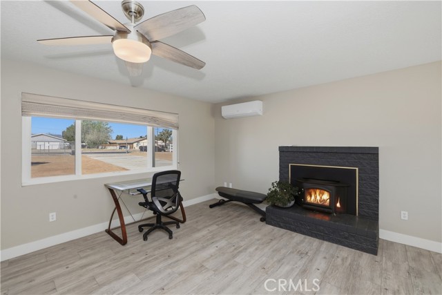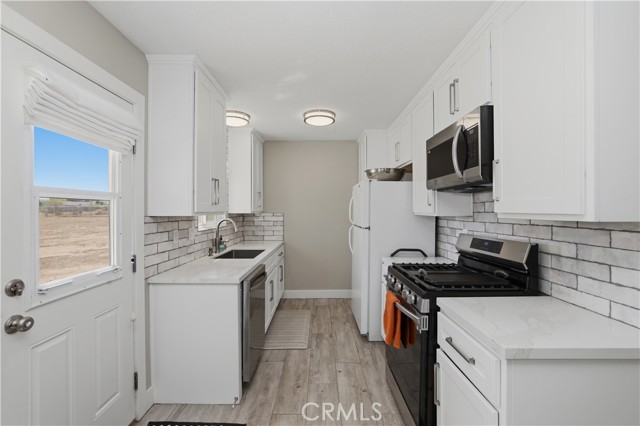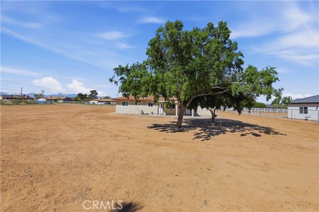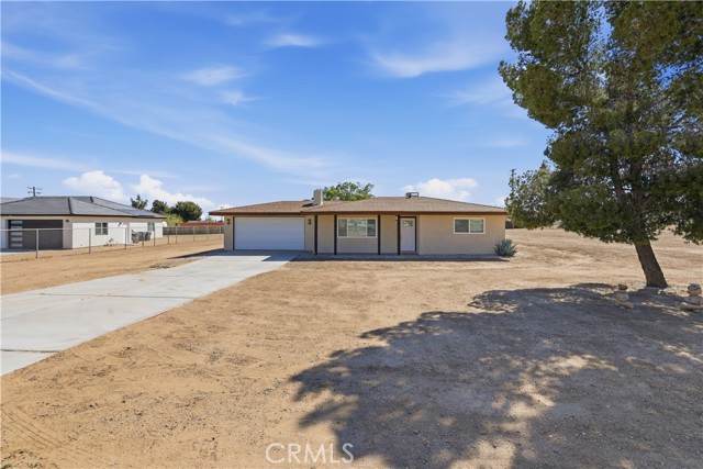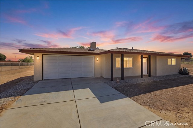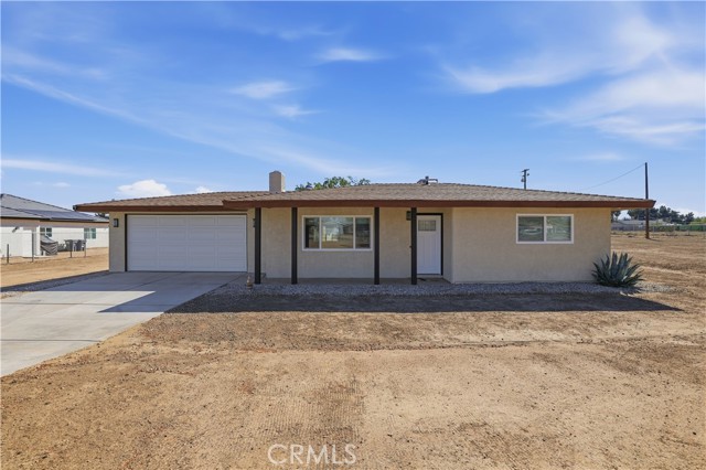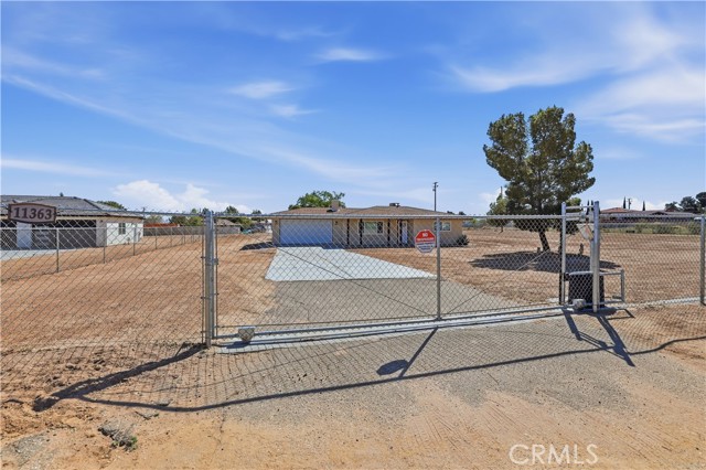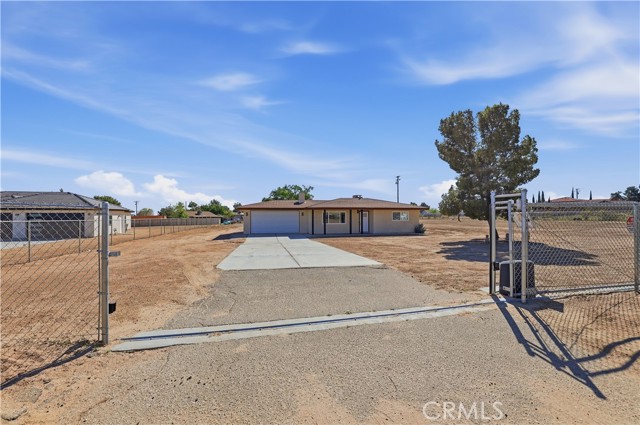 Welcome to this gorgeous 2-bedroom, 1-bathroom home, 882 sq. ft. of single-level living on a generous 45,600 sq. ft. fenced lot w/ a automatic gate, and a 2nd gate entrance located near the freeway in Hesperia. This property boasts a comfortable floor plan, perfect for modern living. The kitchen features quartz countertops, built-in appliances, and a nice sized pantry. Large living area w/ Fireplace. This home also offers two bedrooms with and updated bathroom. Laundry & two car garage, as well. Additionally, the expansive lot provides lots of potential making this property an excellent choice, with comfortable living and Commuter Close. This Beautiful Home has recently been remodeled, new windows, flooring, heating system doors, appliances. Check it out today! Photos of fire in fireplace are computer generated.