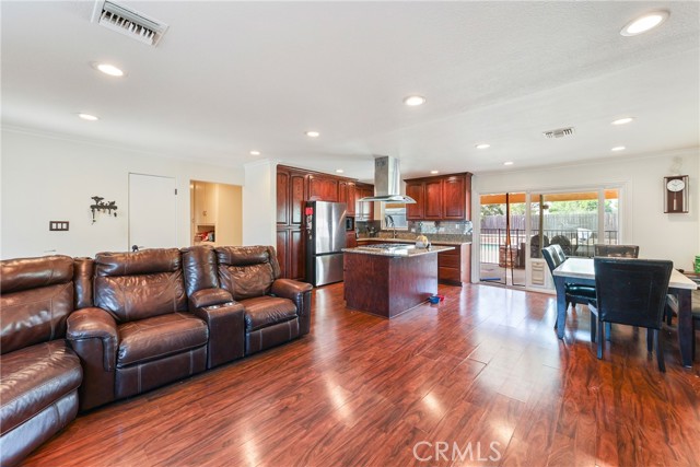 Located on a private corner lot at the end of a cul-de-sac, this updated Traditional home sits on an expansive 8,300+ sq ft lot and offers great indoor-outdoor living. The open floor plan features a living room, kitchen, and dining area that flow together well for entertaining. Sliding doors lead to a large covered patio overlooking the pool, which is secured with a safety fence. The primary suite includes a 3/4 bath and direct access to the backyard and pool area. Additional bedrooms include ceiling fans and share a updated hall bathroom. The hallway features built-in cabinets providing ample storage. Major system upgrades include a new HVAC system and water heater installed in 2024, along with an updated electrical panel and dual pane windows. Additional improvements include solar panels, energy efficient pool equipment, recessed lighting and crown molding. The private backyard is low maintenance and features a lap pool, fire pit area, grassy areas, and a detached shed that can be used as an office, gym, studio, or flex space. The home also features a beautifully landscaped front yard that adds to the home’s curb appeal. Conveniently located near Gladstone Park, Glendora Public Market, shopping, restaurants, and freeway access, and located within the Charter Oak School District.