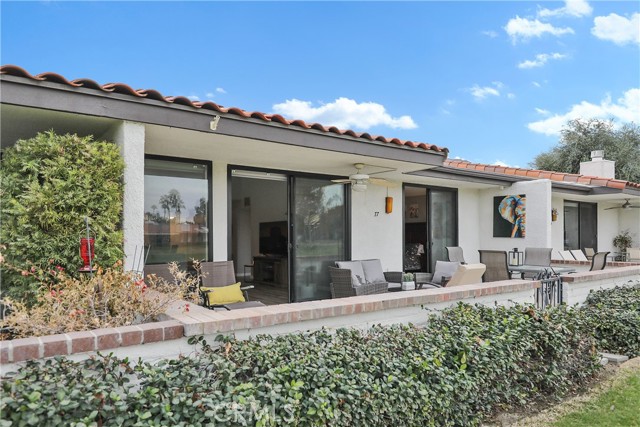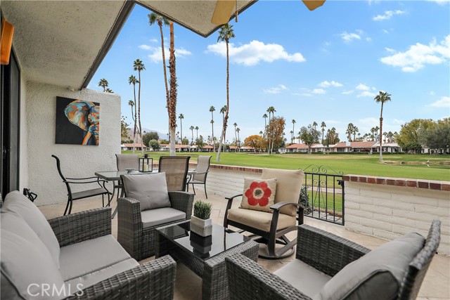 Location. Location.Location. Ideally located near the main entrance of the community, this beautifully updated condo offers an open floor plan and exceptional views of the mountains, golf course, and water fountains. The property is sold fully furnished and is truly turnkey, making it ideal as a full-time residence, vacation home, or investment property. The interior features luxury vinyl flooring throughout, a modern upgraded kitchen, and a fully renovated primary bathroom. The spacious layout provides privacy between both bedrooms, with the primary suite offering plenty of closet space, an ensuite bathroom and access to golf course side patio. The main living area is bright and open, creating a comfortable and functional flow throughout the home. Additional features include an attached 2-car garage and a prime location within the community, close to the main entrance for easy access. Residents enjoy a well-maintained neighborhood with beautifully landscaped grounds, golf course views, and peaceful water features. Conveniently located within walking distance to The River Mall, the Omni Resort Hotel & Spa, dining, shopping, and entertainment, this property combines location, comfort, and a turnkey lifestyle in the heart of Rancho Mirage.