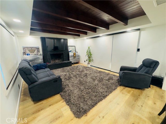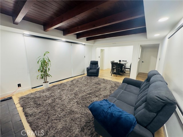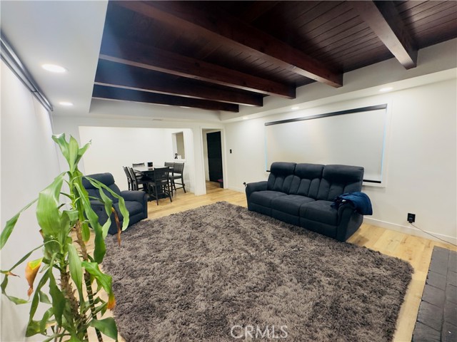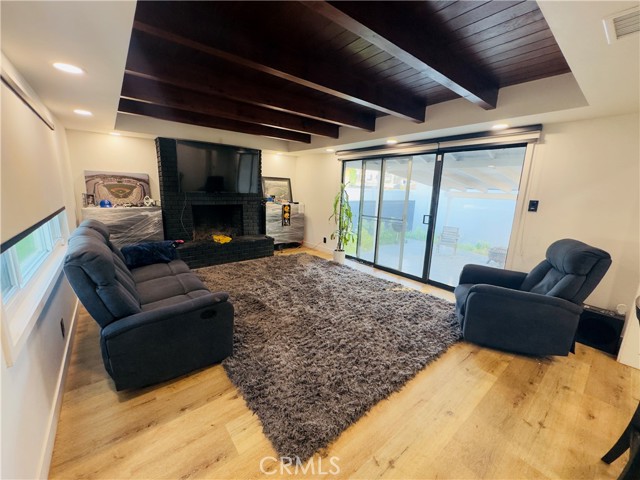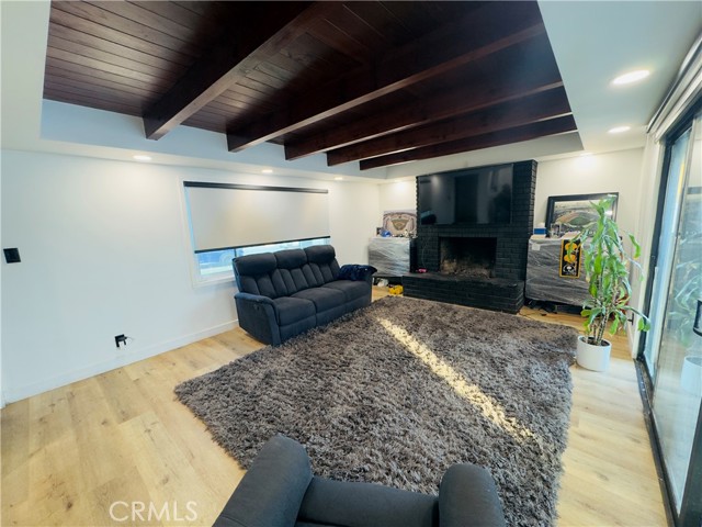 A great opportunity to own a turnkey home in a desirable Pico Rivera neighborhood! This move-in ready property blends modern upgrades with warm, inviting design. Step into a spacious living room featuring stunning exposed wood beam ceilings, a sleek black brick fireplace, and an open layout filled with natural light. The home showcases newer flooring throughout, recessed lighting, and a clean, contemporary feel. The kitchen offers updated cabinetry, granite countertops, and a functional layout perfect for everyday living and entertaining. The upgraded bathroom features a modern vanity, custom tile shower, and stylish finishes. Additional highlights include a laundry area, updated fixtures, and a layout that maximizes comfort and usability. The private backyard offers space to relax, entertain, or create your ideal outdoor setup. Conveniently located near schools, shopping, dining, and easy freeway access.
