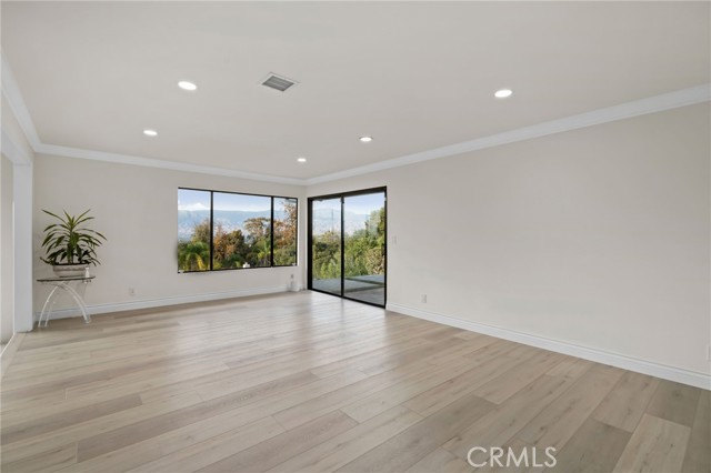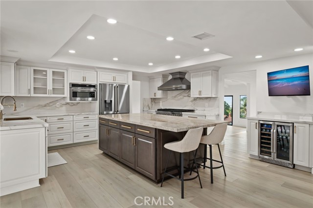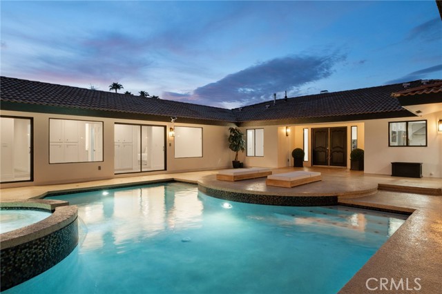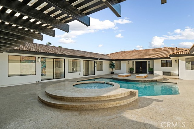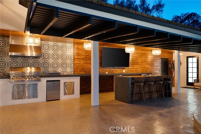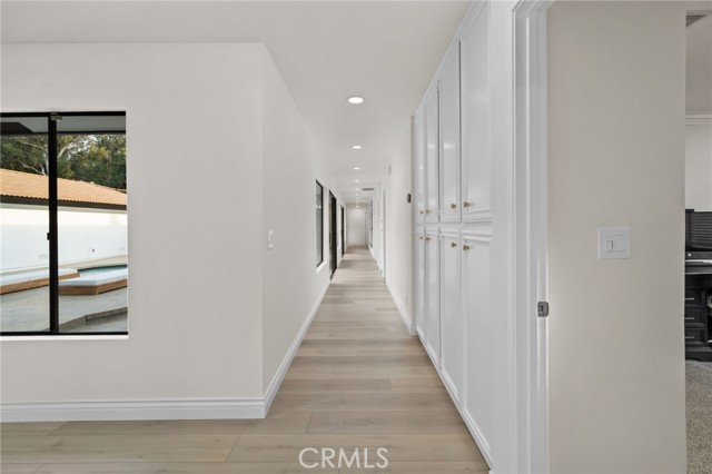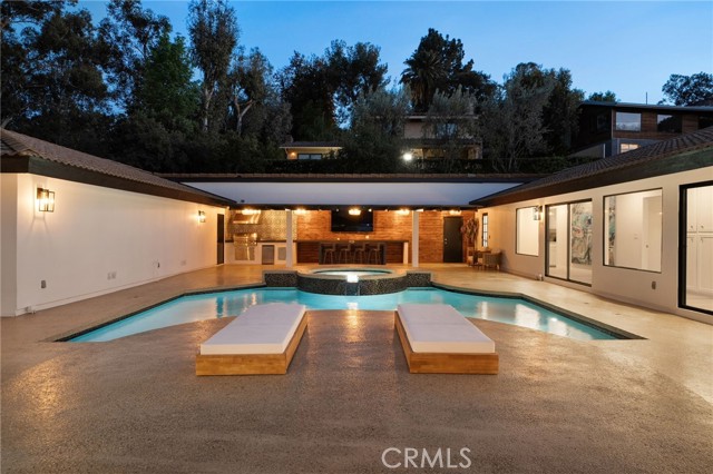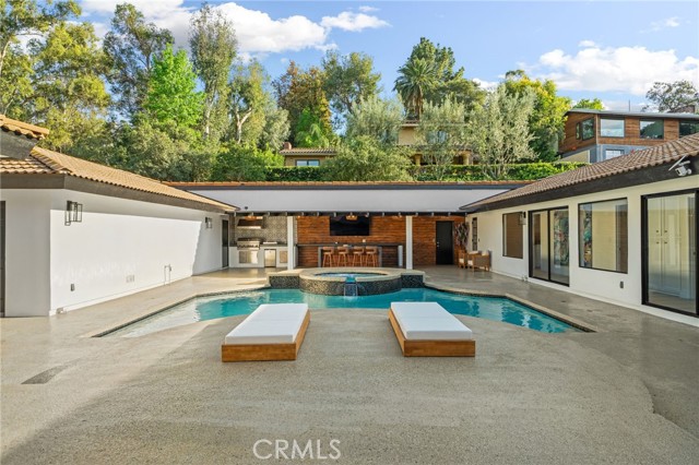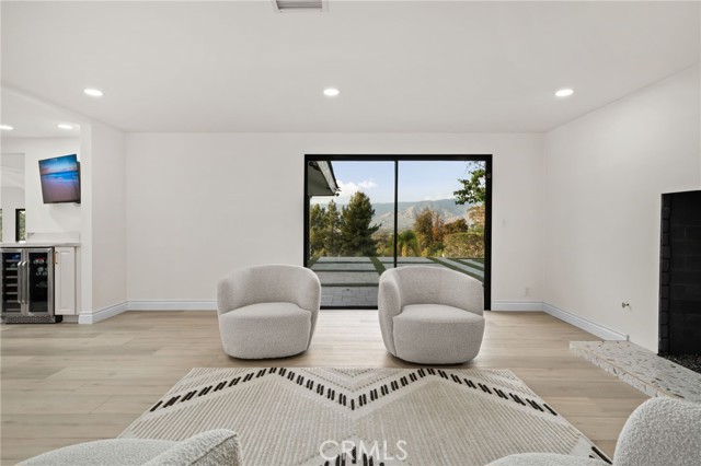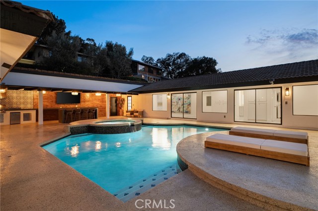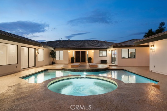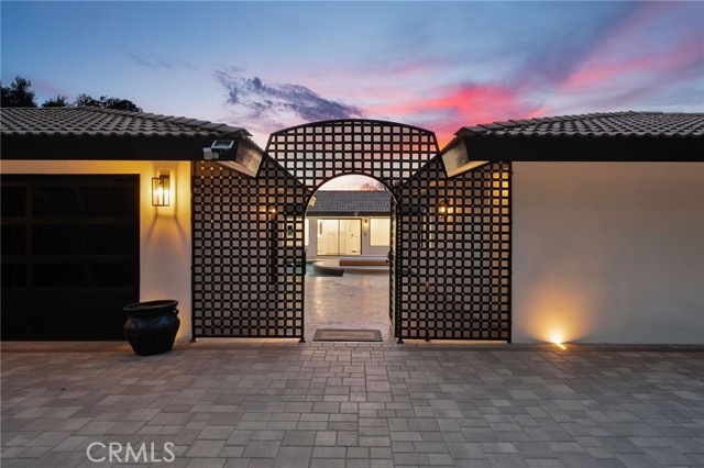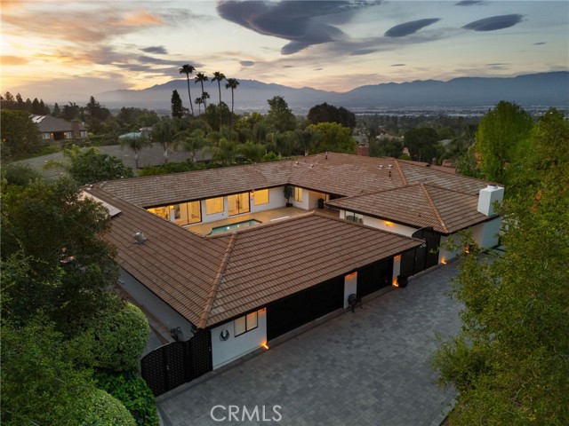 Tucked along in one of the most desirable areas of Smiley Heights in South Redlands. Prestigious tree-lined neighborhood with terrific curb appeal. This hilltop corner home is a rare masterpiece, offering stunning views. This Beautiful Contemporary Residence has charm and elegance. Recently renovated from top-to-bottom. Arrive in style on stunningly crafted, brand-new paver driveway that perfectly frames the home's exterior of the home along with new lighting and smooth finished walls throughout the exterior/interior of home creating a clean tranquil canvas. Enter into a private gated courtyard, you are greeted by a shimmering, centrally located sparkling new pebble finish pool. This isn't just a home-it's a private sanctuary with an Indoor/Outdoor flow. The open-concept floor plan utilizes sliding glass doors allowing the living, and kitchen areas to blend in effortlessly with central pool. Along side with completely renovated barbeque area, with lattice cover patio, concrete counter top with polish finish, smooth stucco finish with BBQ grill 42", with 2 side burners, sink, new exhaust fan for BBQ, new recess lighting and spot lighting. Step through the double-door entry into an airy, light-filled foyer, natural light atmospheres and panoramic, scenic views. Greeted by high ceilings and a sweeping open floor plan designed for both comfort and entertainment. This fully renovated, move-in-ready home boast a modern, top-to-bottom transformation, featuring a stunning new chef's kitchen featuring quartzite countertops, all new cabinetry, huge island ideal setting for those family gatherings. Top tier stainless steel appliance with an 8 burner stove. Kitchen also features lounge area with an oversized custom fireplace. Walk-in pantry. High-end luxury wide plank flooring through out the home, plush carpeting in all 4 bedrooms. Master bedroom suite features a fireplace, walk-in closet built in drawers along with master bathroom has a display case (a women dream). 5 Bathrooms are modernized with new tiling, vanity, LED/anti fog mirrors and fixtures. Fresh paint and recessed lighting through-out the home. 5th Bedroom currently being used as retreat room with built-in sauna. Huge laundry room, Large area for all your linen, lots of storage space. Home also has tankless water heater, new HVAC, electrical, plumbing, and water softener system. Two car garage with new sleek garage doors lots of storage. Tesla Charger, and Solar Panels. A MUST SEEHOME.