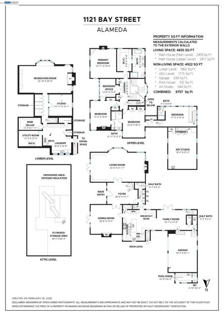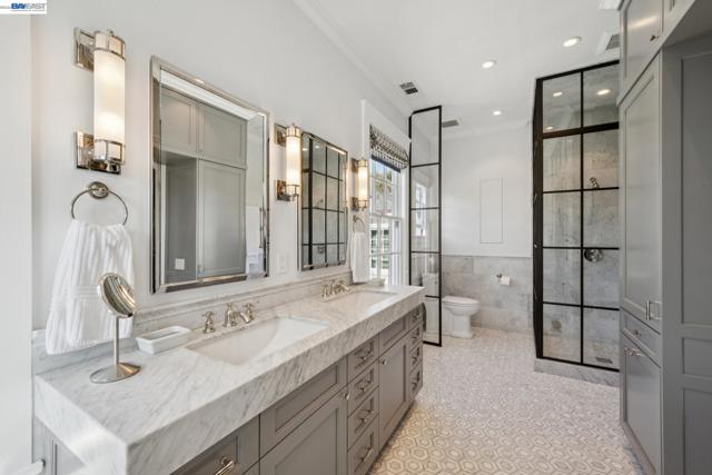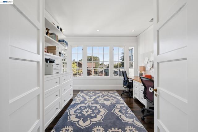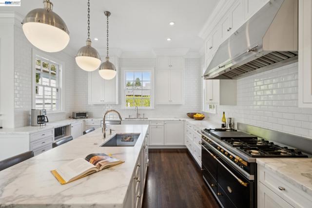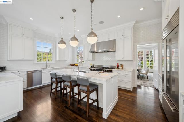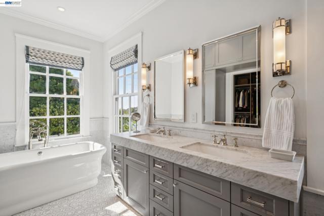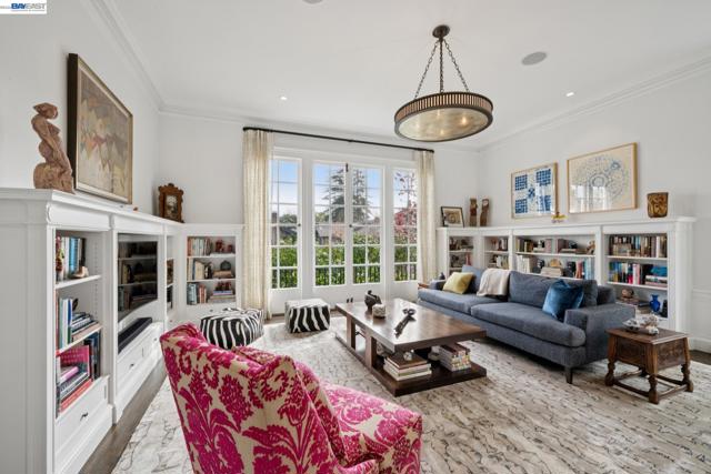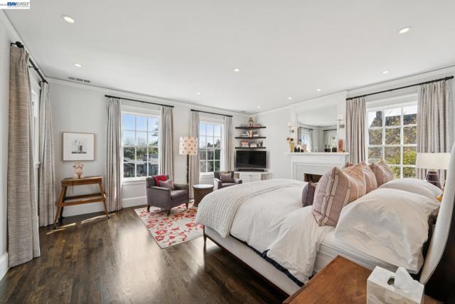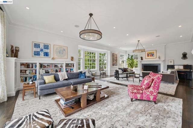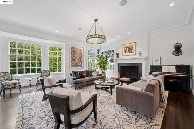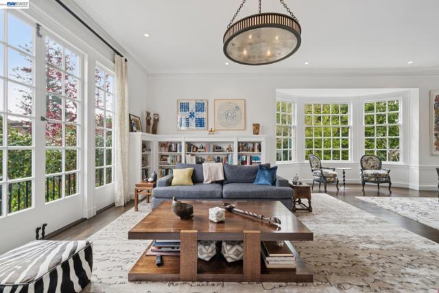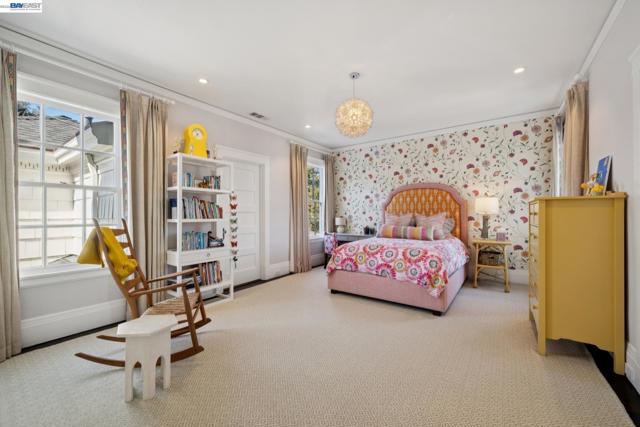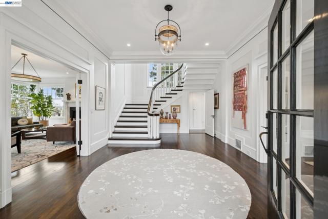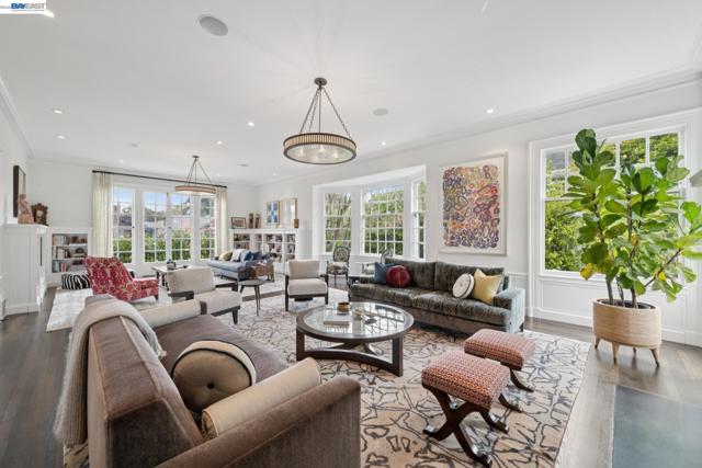 First envisioned more than a century ago on one of Alameda’s most desirable waterfront blocks, this exceptional 5++BD/4++BA Colonial Revival estate showcases quiet luxury and comfortable modern living. With bay views, a private pool and pool house, the 7286 SQFT home embraces the best of island living on over 1/3 of an acre. Step inside the stately foyer with sweeping staircase and entrances to the expansive dining and great rooms, each featuring floor-to-ceiling casement windows opening to Juliette balconies. The adjacent chef’s kitchen includes Lacanche range, Sub-Zero fridge, marble counters, 2 sinks, a large island, and glass doors leading to patios and the pool area for seamless indoor-outdoor living. A sunny adjoining den, two powder rooms, interior access to the 2-car garage, and a flexible studio space complete the first floor. Upstairs, the primary suite offers bay views, a fireplace, walk-in closet, spa-like bath, and an adjacent office. Two bright bedrooms share a stylish Jack-and-Jill bath and office; the guest room features its own en-suite. The lower level adds a den, workroom, a large laundry room, and wine cellar. Solar power, EV charger, and Tesla batteries. Near excellent schools, parks, dining, ferry & miles of beach trails along Alameda’s beautiful shoreline. Please, do not disturb occupants. This home is available to tour by appointment only.