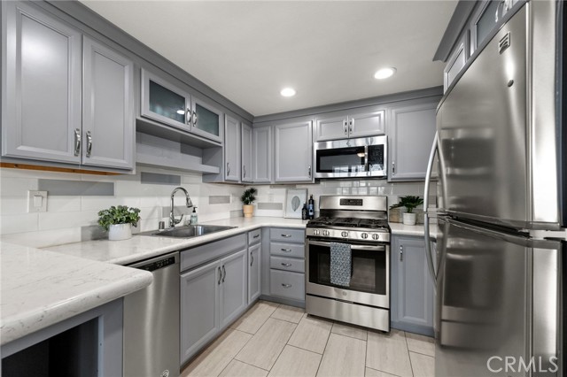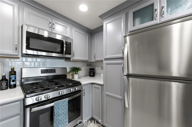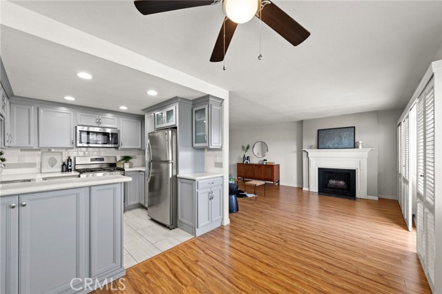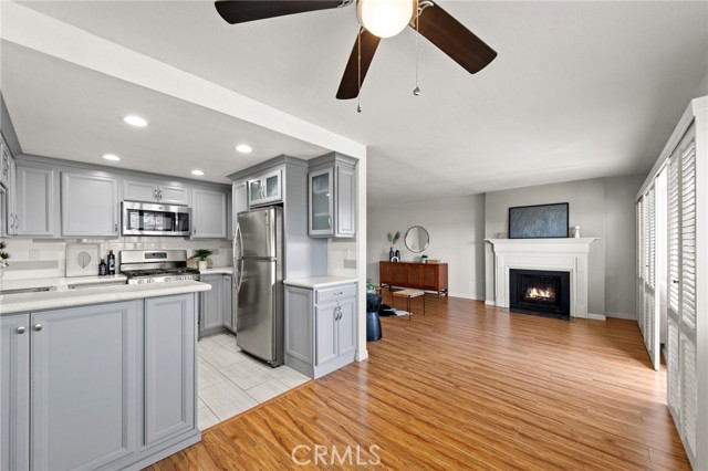 Welcome to this beautifully updated condo in the heart of San Pedro, offering a bright and spacious open floor plan designed for comfortable living and effortless entertaining. The fully remodeled kitchen features sleek white countertops, modern grey cabinetry, and ample prep space, seamlessly flowing into the dedicated dining area. The inviting living room is anchored by a stylish electric fireplace and opens to a private balcony—perfect for relaxing or enjoying coastal breezes. A long hallway provides exceptional storage with multiple closets, including a convenient side-by-side laundry setup tucked neatly within one. The generously sized primary bedroom includes an attached full bathroom, creating a peaceful retreat at the end of the day. Located within a gated community, residents enjoy access to a spa and outdoor patio area, offering both privacy and resort-style amenities. Included is a tandem assigned parking for 2 vehicles. This unit is also primely located near multiple hiking trails! This is San Pedro living at its best—modern, functional, and move-in ready.
