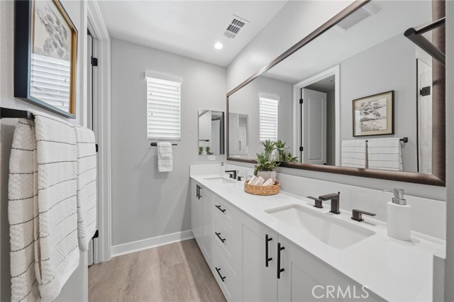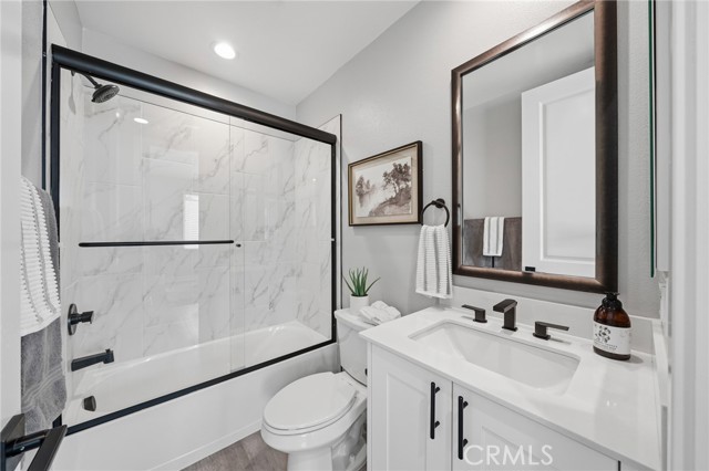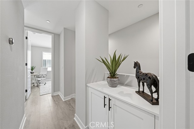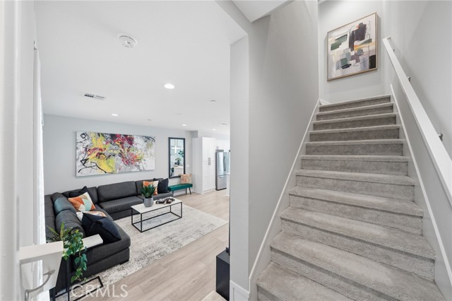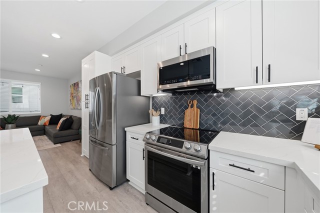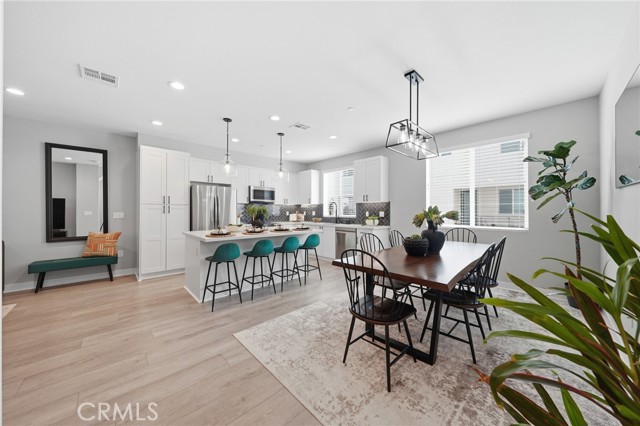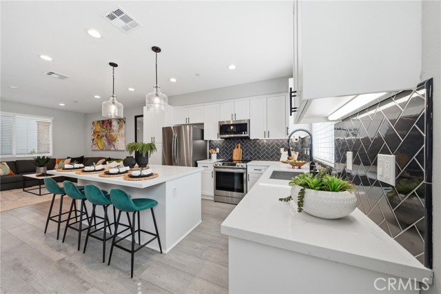 Welcome to Walnut Place, where modern design meets smart, energy-efficient living. Built in 2022, this beautifully and fully upgraded townhome is located within a private gated community featuring lush landscaping and serene walkways. With 4 bedrooms, 3.5 bathrooms, and 1,710 sq ft of living space, this home features a desirable First-Floor bedroom with its own ensuite. High ceilings and an open-concept layout create a bright and airy atmosphere throughout. The main level features a spacious great room connecting the living, dining, kitchen areas, and a private deck, ideal for entertaining. The Chef’s kitchen showcases quartz countertops, stylish herringbone backsplash, white shaker cabinets with soft-close drawers, a large island, pantry, Samsung stainless steel appliances, built-in microwave, and pendant lighting to complete the space. Additional upgrades include luxury vinyl plank flooring, recessed lighting with dimmers throughout, dual-pane windows, and a Whole-House Water Filtration System. The attached two-car garage offers direct access, overhead storage, and DUAL 220-volt EV charging outlets. Upstairs includes three bedrooms, highlighted by a spacious primary suite with walk-in closet, and luxurious ensuite with dual sinks, walk-in shower, and private toilet area. Additional features include a hallway bath with tub/shower combo, linen storage, and laundry closet with stackable washer/dryer. Designed with sustainability and technology in mind, this home includes Energy Star features, a whole-home air filtration system, Nest thermostat, Ring doorbell, CAT6 wiring, USB charging outlets, an all-electric heat pump HVAC system, and an Energy Star-rated hybrid water heater. Enjoy long-term savings with Fully Paid-Off Solar Panels. Low HOA includes 1-gigabit in-home Fiber internet. This VA and FHA approved community is assigned to highly rated Chapman Elementary and offers a prime central location—just minutes from South Bay beaches, shopping, dining, and major freeways. Don’t miss your opportunity to own this move-in ready home. Call me today to schedule a private tour!