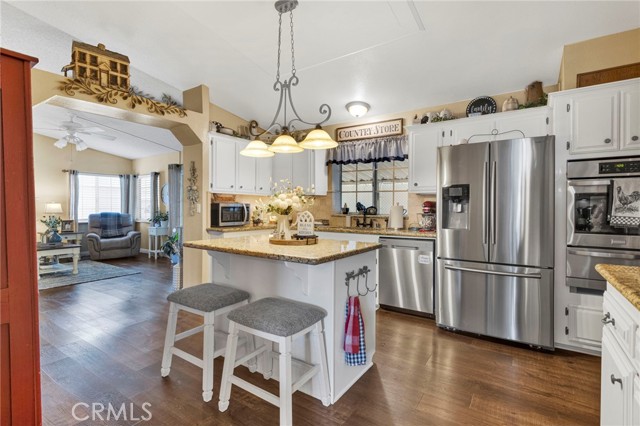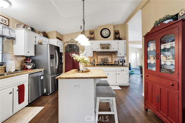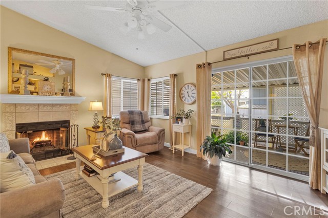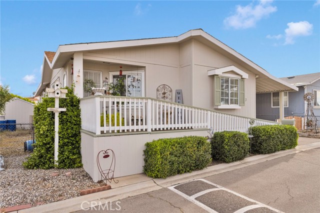 Welcome to this beautifully maintained Silvercrest Presidential home, offering 3 bedrooms, 2 bathrooms, and approximately 1,650 sq. ft. of spacious, open-concept living. Built in 1989 and measuring 64x26, this home combines comfort, functionality, and thoughtful upgrades throughout. Step inside to find rich wood plank water-resistant vinyl flooring, upgraded baseboards, and tastefully improved finishes that create a warm and modern feel. The upgraded kitchen features stainless steel appliances, an island perfect for entertaining and meal prep, and elegant granite countertops, which are also carried into the bathrooms for a cohesive and stylish design. The primary suite has been refreshed with new carpet and fresh paint, offering a clean and inviting retreat. The open layout provides plenty of room for both everyday living and entertaining. In addition to central air conditioning, the home is equipped with an evaporative cooling system and a cozy fireplace providing efficient and flexible climate control. Accessibility and convenience are key, with an exterior ramp for easy entry, a covered side-entry carport, and direct access into the laundry room/kitchen via steps from the carport. The home also features motion detectors near both the carport and deck for added peace of mind. Enjoy outdoor living with a fully fenced yard, partial landscaping, and a mature shade tree. Step out from the den’s sliding glass door onto a spacious deck, complete with steps leading to both the backyard and carport—perfect for relaxing or hosting gatherings. Additional highlights include two storage sheds: • The first is on a permanent foundation and fully equipped with electricity, lighting, a wall A/C unit, built-in shelving, and a work counter—ideal for a workshop or hobby space • The second shed offers additional storage and is not attached to a foundation Conveniently located near parks, eateries, dining, entertainment, and more, this home also offers easy access to outdoor adventure—just about 40 minutes from the local mountains. The community features a clubhouse along with a community pool and spa, enhancing the overall lifestyle and amenities available to residents. This home offers the perfect blend of space, upgrades, and practical features—ready for its next owner to move in and enjoy.