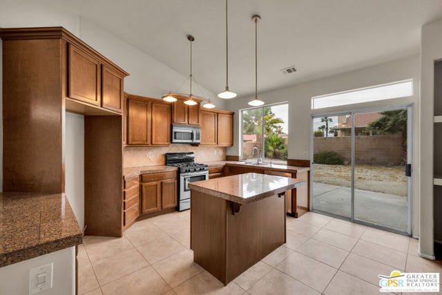 Welcome to La Pasada in Cathedral City! This spacious 4BD/3BA home sits on an oversized 9,583 sq. ft. corner lot and offers 1,659 sq. ft. of bright, open living space with soaring ceilings and abundant natural light. Freshly painted in January 2026, the home also features a new HVAC system installed in 2025 for added efficiency and peace of mind. The remodeled kitchen showcases granite countertops, a center island, and ample cabinetry, seamlessly opening to the living and dining areas - perfect for everyday living and entertaining. The primary suite offers generous closet space and an ensuite bath with dual vanity and spa tub. Additional bedrooms provide flexibility for guests, family, or a home office. A separate laundry room and oversized 3-car garage add everyday convenience. Step outside to an expansive backyard with peek-a-boo mountain views, offering incredible space and endless potential to create your ideal outdoor retreat. Whether you envision landscaping, play areas, or an entertainer's paradise, the possibilities are wide open. Previously used as a long-term rental, this home is ready for its next chapter and presents a great opportunity for buyers to add personal touches over time and truly make it their own. Conveniently located near shopping, dining, golf, and with easy access to the I-10, this home is perfect for first-time buyers, families, or anyone seeking space, value, and upside potential in a desirable neighborhood.