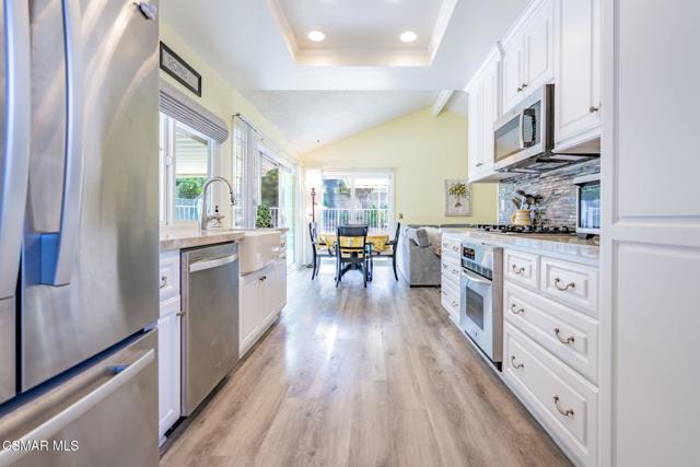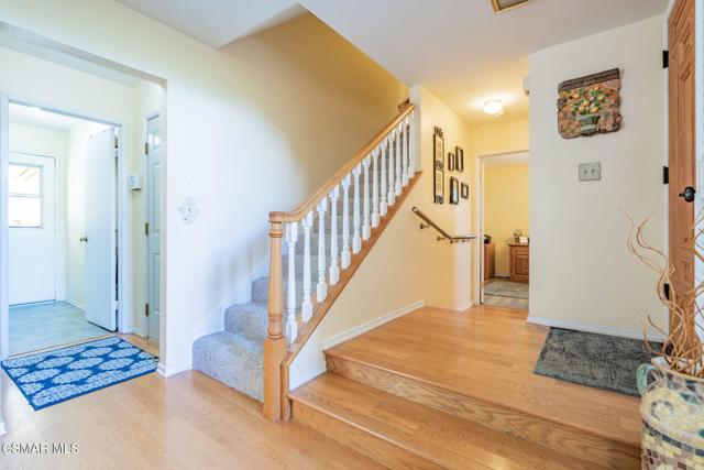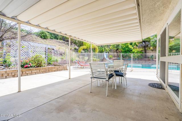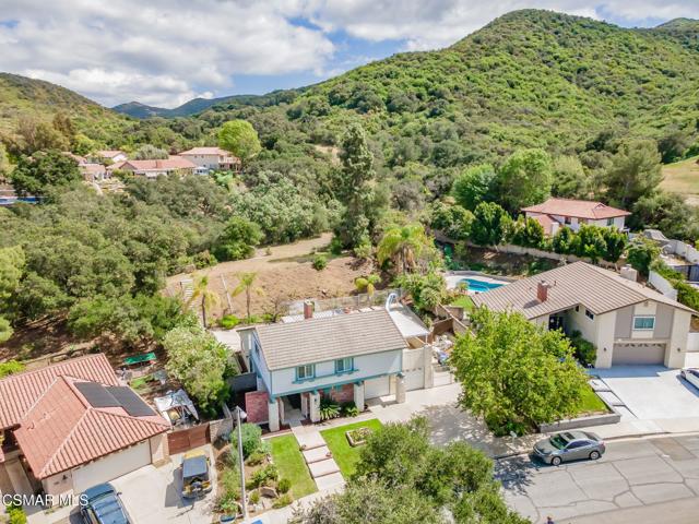 VIEWS, VIEWS, VIEWS! Welcome to Hickory Grove Drive in the highly desirable Lynn Oaks Estates, where this 4-bedroom, 3-bathroom home showcases breathtaking, unobstructed views of the Conejo Valley and backs to open space for ultimate privacy.Situated on a rare and expansive split-level lot, this property offers endless possibilities to create your dream outdoor retreat. Whether you envision a vineyard, garden, firepit lounge, or entertaining oasis, the oversized upper lot provides the perfect canvas--all while enjoying incredible panoramic views.Inside, the home features a bright and inviting living and dining area with vaulted ceilings and a cozy fireplace. The updated kitchen is equipped with quartz countertops, stainless steel appliances, and flows seamlessly into the main living spaces. A separate family room with large sliding glass doors brings in natural light and creates a perfect indoor-outdoor connection.The versatile floor plan includes a convenient downstairs bedroom near the entry--ideal for guests or a home office--along with a nearby guest bath. Upstairs, you'll find three additional bedrooms, including a true primary suite retreat featuring a spacious sitting area, large windows, a private balcony, walk-in closet, and direct access to attic storage. Two secondary bedrooms offer newer carpet and wall-length closets.Additional highlights include newer carpet, vinyl flooring, dual-pane windows, shutters throughout, an indoor laundry room, and direct access to a two-car garage. Double gates open to a large side yard leading to the pool and spa area, perfect for entertaining or relaxing.Located just moments from Lynn Oaks Park, residents enjoy access to BBQ areas, picnic tables, playgrounds, sports courts, and direct connections to scenic trails and open space. Conveniently close to freeway access, shopping, dining, and entertainment at The Oaks Mall, and situated within the award-winning Conejo Valley Unified School District.This well-loved home has been meticulously maintained and offers a fantastic opportunity to add your personal touch while enjoying one of the best view properties in the area.