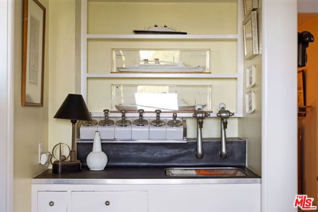 Set above the city with sweeping, panoramic views, this streamline moderne residence offers a rare blend of character, volume, timeless design, and classic Hollywood glamor. Spanning approximately 3,132 square feet, this 4-bedroom, 4-bathroom home is thoughtfully designed to embrace both comfortable daily living and exceptional entertaining. A dramatic living room welcomes you with soaring ceilings, expansive walls for art, and abundant natural light pouring through walls of glass that frame the stunning vistas beyond. A striking spiral staircase adds a sculptural focal point while leading to a private media/screening room complete with wet bar and powder room---an ideal retreat for entertainment and relaxation. The adjacent dining room is perfectly suited for both intimate gatherings and larger-scale entertaining, seamlessly connected to the home's open and airy layout. The kitchen retains its classic charm while offering generous workspace, an adjoining butler's pantry, and convenient access to the main living areas. A dedicated laundry area and additional service spaces enhance everyday functionality. The first floor also features a versatile den/office with bath, ideal for a home workspace, along with a separate guest or maid's bedroom and bath, offering flexibility for a variety of living arrangements. Upstairs, the primary suite serves as a private retreat, complete with its own luxurious bath and direct access to an expansive upper deck perfect for taking in morning light or evening sunsets. A second bedroom, currently configured as an office, also opens to the deck, creating a seamless indoor-outdoor connection. A third bedroom completes the upper level and shares a Jack-and-Jill bath. Outdoor living is equally compelling, featuring a covered patio overlooking a pool and spa, all set against breathtaking views. A step-down seating area with a fountain provides an additional intimate space for relaxation or entertaining, enhancing the home's tranquil and resort-like atmosphere. Throughout, unique streamline moderne architectural elements, curated interiors, and an undeniable sense of personality create a one-of-a-kind living experience. Only the second time on the market, this residence was featured in the L.A. Times Home Section in November 2006---offering a rare opportunity to own a home that combines architectural interest, functional design, and an exceptional setting.