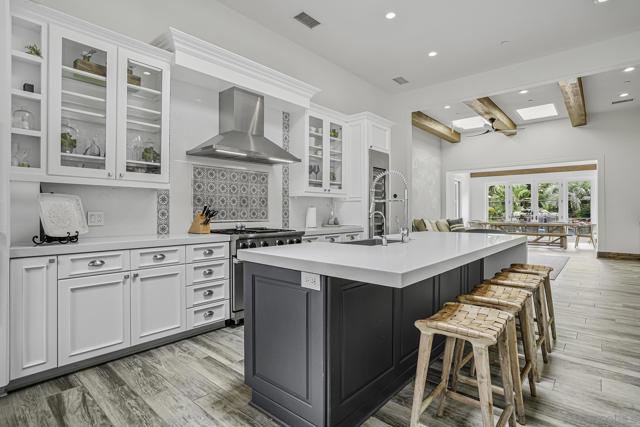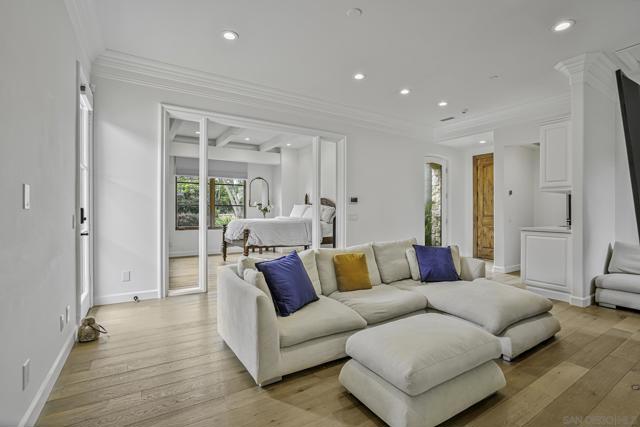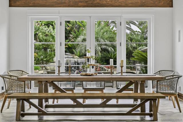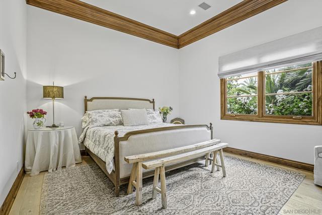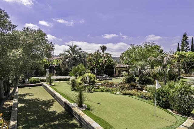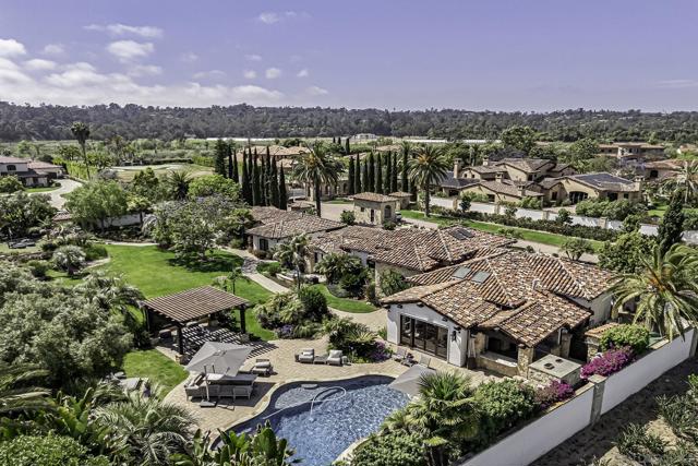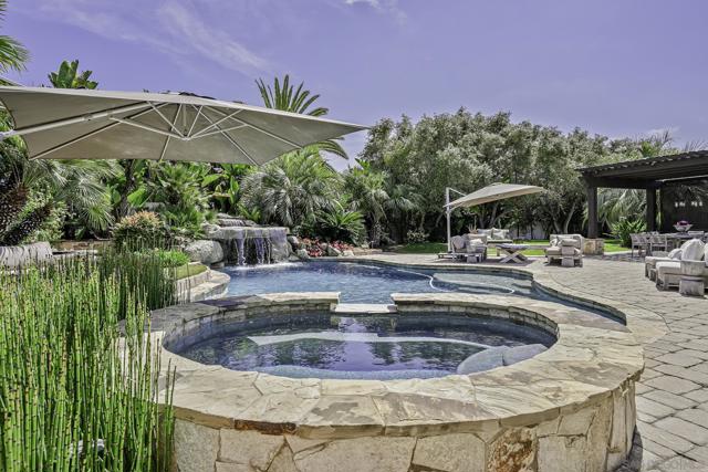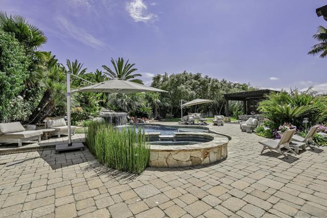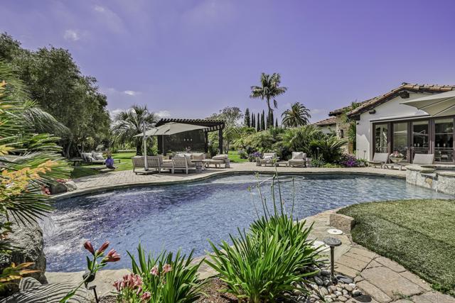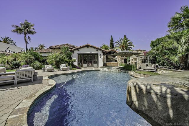 Welcome to your own private paradise nestled in the exclusive, guard-gated enclave of The River Estates; a prestigious community of just 14 luxury residences in Rancho Santa Fe. Beyond its impressive entrance, this meticulously crafted single-story estate sits on resort-style grounds, offering the ultimate Southern California lifestyle. This custom-designed 5-bed, 4-bath estate—including a detached "guest" house —seamlessly blends luxury, comfort and modern elegance. The main residence (4 bd, 3 ba) emphasizes indoor/outdoor living, with a fresh modern Tuscan vibe and stunning craftsmanship throughout. Step outside into a lush, private oasis designed for entertainment and tranquility alike. The expansive grounds feature: A resort-style pool and spa with cascading waterfall, Loggia and covered veranda for al fresco dining, Summer kitchen with built-in BBQ & authentic Italian stone pizza oven, Basketball half court, 7-hole putting green, bocce ball, horseshoe pit, and rolling green lawns, serene koi pond and outdoor fireplace, ideal for meditation or entertaining, abundant seating areas thoughtfully arranged for your enjoyment, several fountains and water elements, evoking a tranquil, resort-like feel, multiple outdoor storage options throughout the property. Surrounded by mature palms and vibrant flora, this estate offers a rare level of privacy, exclusivity, and resort-like amenities. It’s perfectly located just minutes from the Rancho Santa Fe Village, award-winning schools, equestrian facilities, shopping, dining, & freeway access.