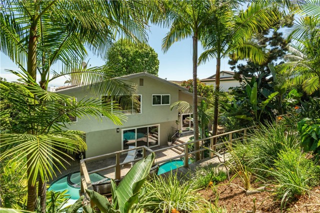 BIXBY HILL | Welcome to 905 Hillside Drive, a private sanctuary located within the 24 hr guard gated community of Bixby Hill where tree lined streets and expansive executive homes create one of Long Beach’s most coveted residential enclaves. Set on a generous lot, this 4 bedroom, 4 bathroom residence spans 3,569 square feet and offers a thoughtfully designed floor plan. The home’s sense of retreat is welcoming beginning with a charming front courtyard just off the kitchen surrounded by mature trees and lush greenery. Inside, the home unfolds with multiple well thought out living spaces. There is a large formal living room with backyard views, formal dining room off the kitchen, and a separate family room complete with a fireplace and game area. The sunny kitchen features ample cabinetry, built in refrigerator, new wine fridge, and island seating. A downstairs bedroom provides flexibility for guests or multigenerational living, while a private home office offers the option for a fifth bedroom if desired. Two bathrooms are conveniently located on the main level, including a powder room and a bath with direct access to the backyard, perfect for pool or outdoor use. Enjoy the convenient inside laundry room and direct access to the two car garage with electric car charging station. Upstairs, the expansive primary suite is complete with a spacious lounge area, office nook, walk in closet, and a luxurious bathroom featuring walk in shower and separate soaking tub. The scale of the home continues throughout including two additional upstairs bedrooms offering generous proportions and a layout that lives beautifully. The backyard is nothing short of extraordinary. Designed as a true outdoor retreat, the terraced landscape features meandering pathways, multiple elevated seating areas, a tranquil pond, and thoughtfully designed spaces. The grounds feel organic, tropical, and completely transportive offering a setting that is both magical and serene with beautiful views from multiple vantage points. Bixby Hill is known for its central location and elevated lifestyle, with residents enjoying access to Rancho Los Alamitos, its stunning botanical gardens and rich history, as well as proximity to Alamitos Bay, CSULB, and top rated schools including Sato Academy of Mathematics and Science. This is more than just a home, it is a private retreat, a place to unwind, and a rare opportunity to own within one of Long Beach’s most sought after communities.