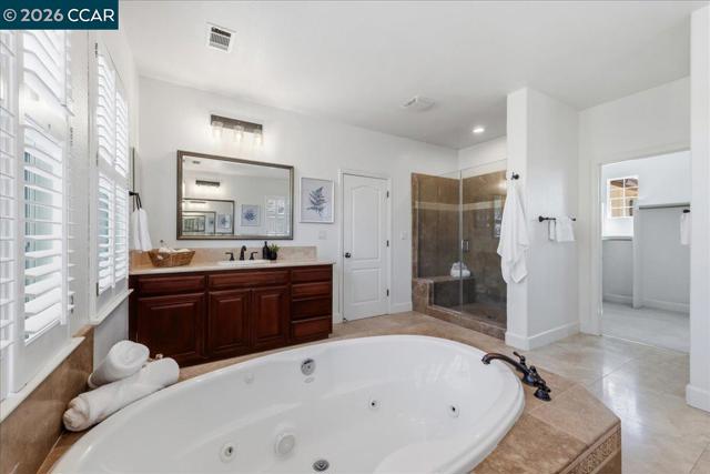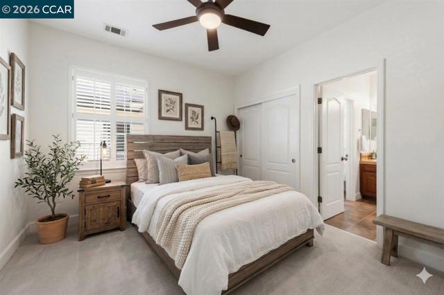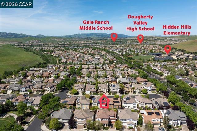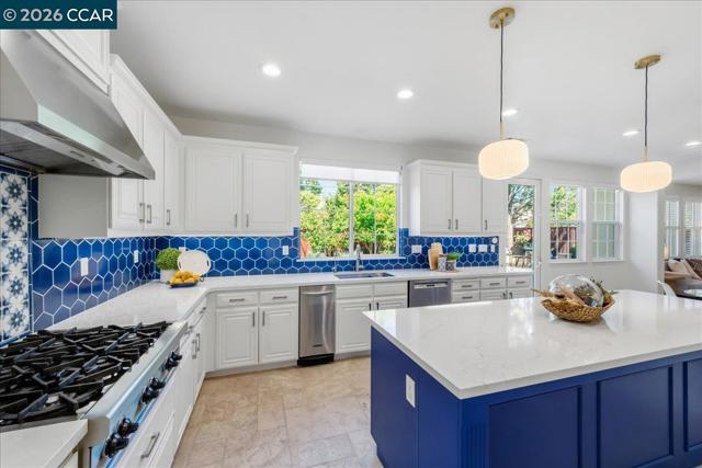 Tucked at the end of a quiet court in the sought-after Windemere neighborhood of San Ramon, 211 Cullens Court offers 3,757± sq ft of beautifully updated living space. This 5-bedroom, 4-bath home includes a main-level bedroom and full bath - ideal for family, guests or a private office. Impeccably maintained and updated with fresh interior paint and new carpet (2022). The kitchen features modern stainless-steel appliances: a new built-in KitchenAid refrigerator (2025), KitchenAid Double Oven, 6-Burner Wolf gas stove with WIFI-enabled range hood (2024) and Bosch Dishwasher. This is complemented by smart upgrades including a NEST thermostat, Ring security system with glass break sensors, and WIFI-enabled sprinkler control (2023). Two new dual-zone HVAC systems (2024) and a water softener enhance comfort and efficiency. The backyard is designed for relaxation and gathering with a gas fire pit and mature fruit trees including lemon, apricot, and pomegranate. Additional highlights include a 3-car garage with two new WIFI-enabled openers, electrical outlets behind each toilet, and new front metal door (2022). Located near top-rated SRVUSD schools, parks, shopping, and commuter routes - this is Windemere living at its finest.