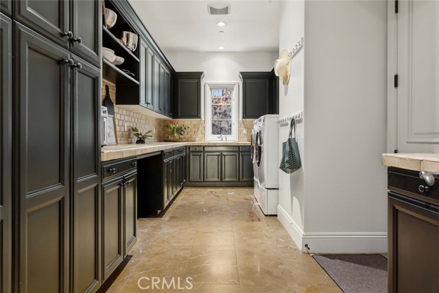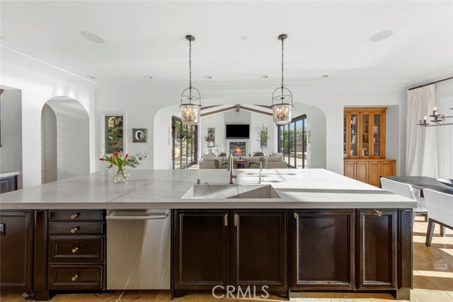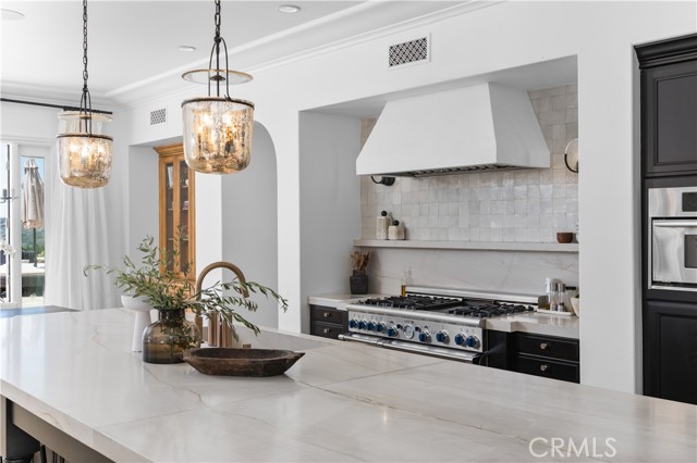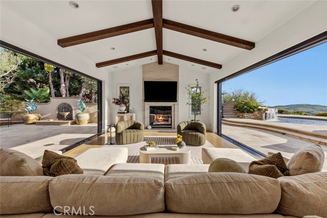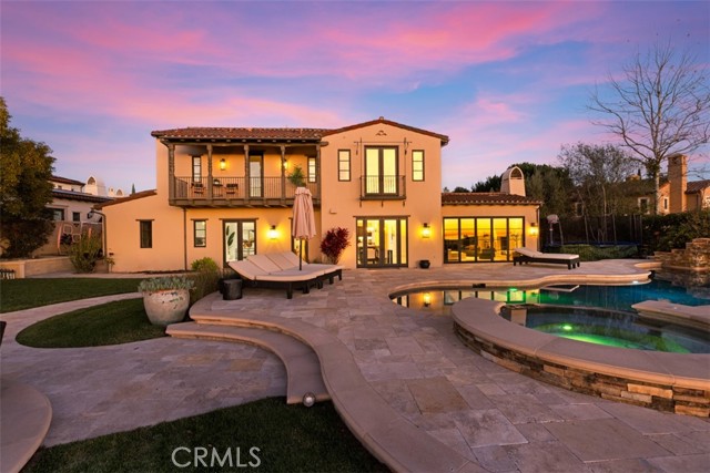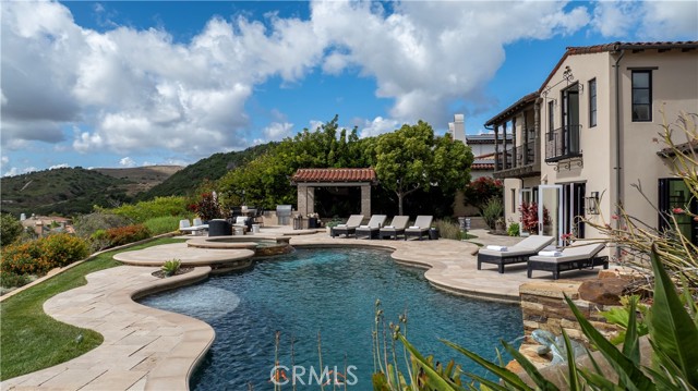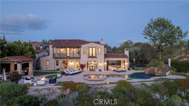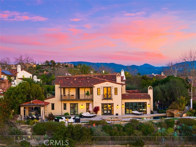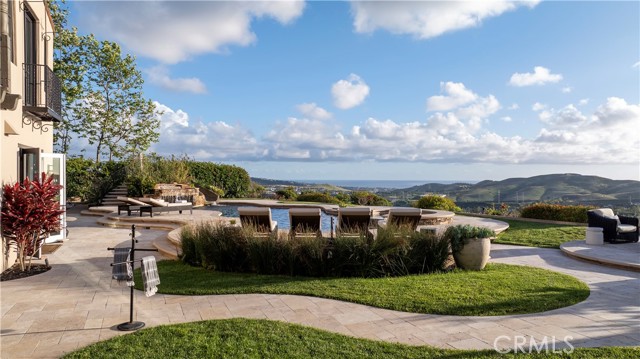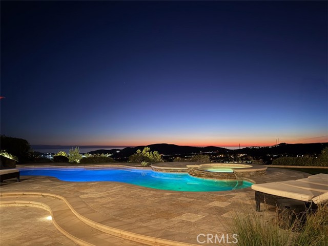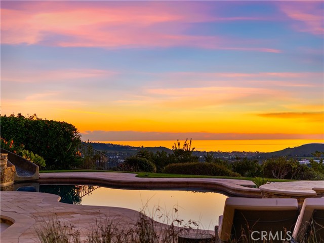 A rare masterpiece perched above the Pacific, this extraordinary estate commands unparalleled panoramic ocean, coastline, and canyon views from one of the most coveted addresses in San Clemente. Set on a private, pie-shaped lot along a premier cul-de-sac within Talega's exclusive gated Lucia enclave, with private park access and beaches just minutes away, this is a once-in-a-generation opportunity to own over 6,000 square feet of architectural grandeur where every room is a celebration of light, space, and vista. A soaring, circular foyer sets the tone, with Brazilian marble floors flowing through gracious entertaining spaces. The formal dining room is served by a temperature-controlled 1,000-bottle wine cellar and a bespoke speakeasy bar. In the great room, vaulted open-beamed ceilings and fireplace open to a reimagined gourmet kitchen featuring a dramatic 17-foot quartz island, Sub-Zero and Thermador appliances, and eat-in dining space. Expansive 15-foot LaCantina doors dissolve the boundary between indoors and out, drawing the eye across endless ocean views and a beautifully remodeled courtyard. A main-level suite with private exterior access is the perfect option for multi-generational living, a second primary suite, or luxurious guest quarters. Dual laundry rooms bring convenience to every floor. Upstairs, four bedroom suites offer private baths and custom closets. The primary suite is a sanctuary, featuring an exclusive view deck, fireplace retreat, dual walk-in closets, and a spa-like bath with floor-to-ceiling quartz rainfall shower. An office with loggia and bonus room with deck complete the upper level, accented by custom window treatments and Juliet balconies. Outside, the grounds rival a private resort. An elevated saltwater pool and spa with rock waterslide are surrounded by an expansive travertine sundeck, a fire pit with built-in dining, full outdoor kitchen, shaded cabana with smart TV, and a fenced dog run, all framed by signature panoramic views. Notable upgrades include a Ring security and alarm system, reverse osmosis kitchen filtration, and whole-home water softener. Talega's resort-caliber amenities are moments away, including 19+ miles of trails, the Swim and Athletic Club, pools, tennis, parks, and the Fred Couples-designed Talega Golf Course, with top-rated Capistrano Unified schools, beaches, and shopping all within easy reach. A true estate property where world-class views, masterful design, and an unmatched location converge.