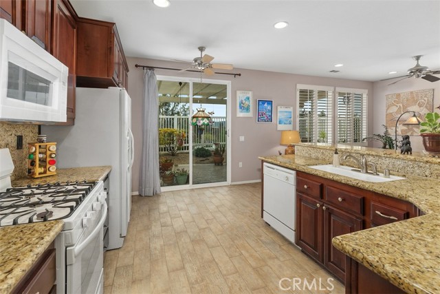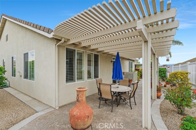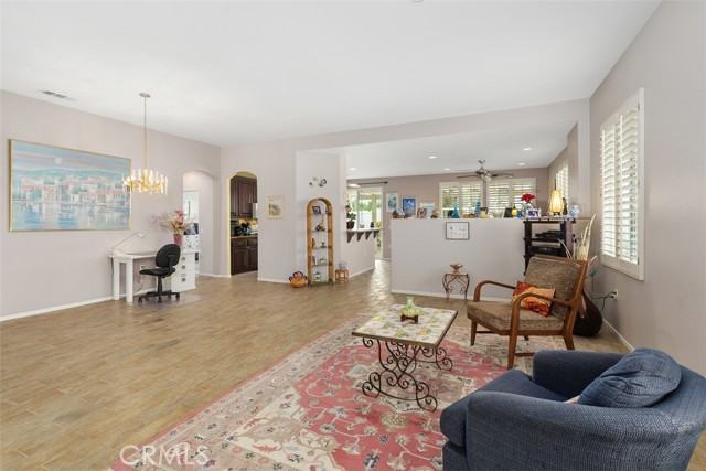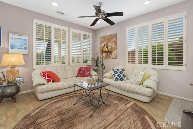 Welcome to this impeccably maintained, original-owner home located in the prestigious Four Seasons 55+ community of Murrieta. This spacious single-story residence offers 2 bedrooms plus an office, 2 bathrooms, and a thoughtfully designed open floor plan filled with natural light. The well-appointed kitchen features granite countertops, a breakfast bar, and a cozy eat-in nook, complemented by elegant plantation shutters throughout the home. Enjoy both a formal living room and separate dining area, along with a warm and inviting family room complete with a fireplace—perfect for relaxing or entertaining. The primary suite is a true retreat, offering two walk-in closets and a luxurious ensuite bath with a spacious walk-in shower and separate soaking tub. Two guest rooms are located at the front of the home, one currently configured as an office, with a conveniently situated guest bathroom featuring a shower/tub combination. Additional highlights include a generously sized laundry room with a deep sink and ample storage cabinetry, as well as a 2-car garage with an epoxy-coated floor and an upgraded tankless water heater. Step outside to a beautifully landscaped, low-maintenance backyard showcasing stamped concrete, an Alumawood patio cover, fruit trees, and breathtaking views—creating a peaceful and private outdoor oasis ideal for entertaining or unwinding. Residents of Four Seasons Murrieta enjoy resort-style living with access to world-class amenities, including a 10-acre lodge featuring a heated pool and spa, fitness center, aerobics and dance studio, library, hobby rooms, beauty salon, and a grand ballroom. Outdoor amenities include tennis and pickleball courts, bocce ball, shuffleboard, putting green, walking trails, and more. The community also offers a vibrant social calendar with clubs and activities such as art classes, yoga, bridge, and billiards. Conveniently located near shopping, dining, and entertainment, including the Promenade Mall, and just minutes from Temecula’s charming Old Town and renowned wineries. With low HOA dues, no Mello-Roos, and appliances included (washer, dryer, and refrigerator), this move-in ready home offers the perfect blend of comfort, luxury, and active adult living. Come experience the exceptional lifestyle at Four Seasons Murrieta!