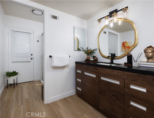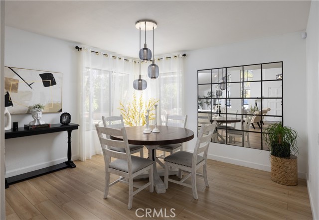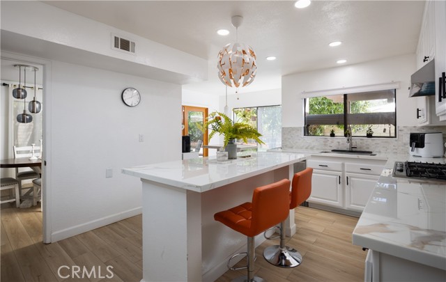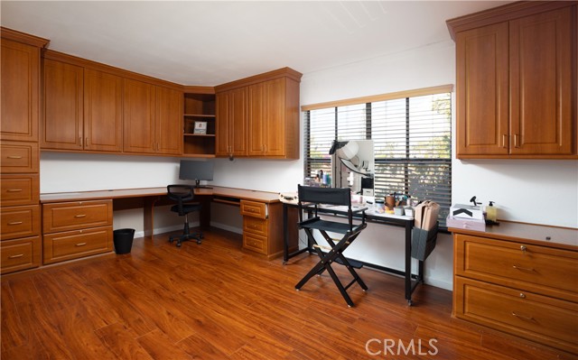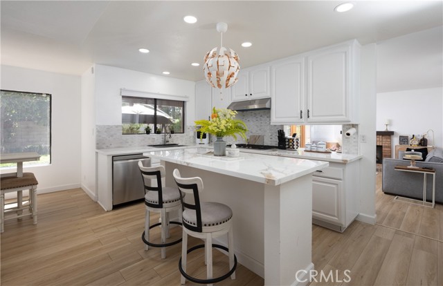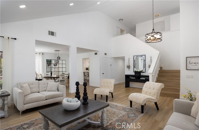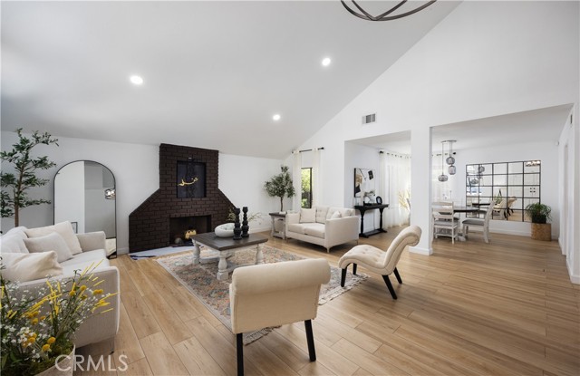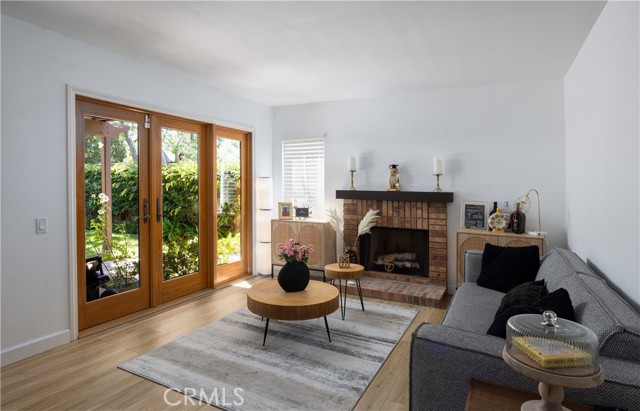 Welcome to this beautifully upgraded home in the desirable Stratford Ridge community of Laguna Hills. This spacious floor plan offers 4 bedrooms and 3 bathrooms, including a main-level bedroom and full bath, plus a loft and a spacious office. A foyer with high ceilings opens to the living room with fireplace and adjacent dining area overlooking the private backyard. The family room features a second fireplace and French doors, creating a seamless indoor-outdoor. The fully upgraded kitchen showcases updated cabinetry, a center island, new countertops, modern lighting, and upgraded appliances. A bright breakfast area with French doors opens to an outdoor dining space. Upstairs, the primary suite offers a private retreat with custom built-ins, a remodeled bathroom, and access to a large balcony with backyard views. Two additional bedrooms, along with a loft and spacious office with custom built-ins. Recent improvements include new lighting fixtures, upgraded flooring throughout, and an open-concept reconfiguration of the main living area. Additional updates include a renovated downstairs bathroom. The private backyard features mature landscaping, fruit trees, and hardscape with brick and slate accents, plus built-in planter seating. Additional highlights include a 3-car garage, oversized driveway, and indoor laundry. Conveniently located near parks, shopping, dining, and major transportation routes