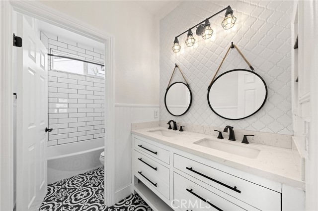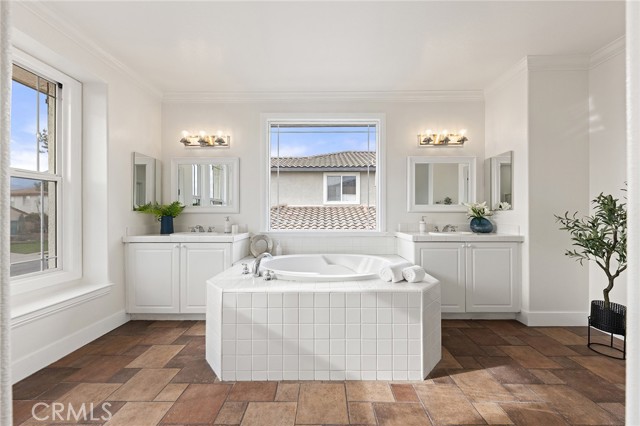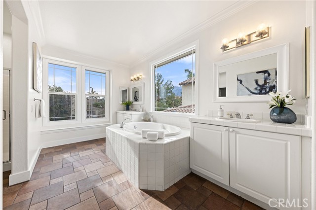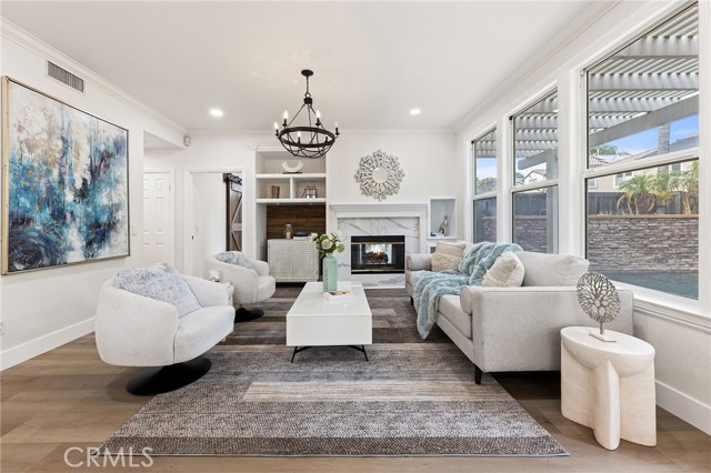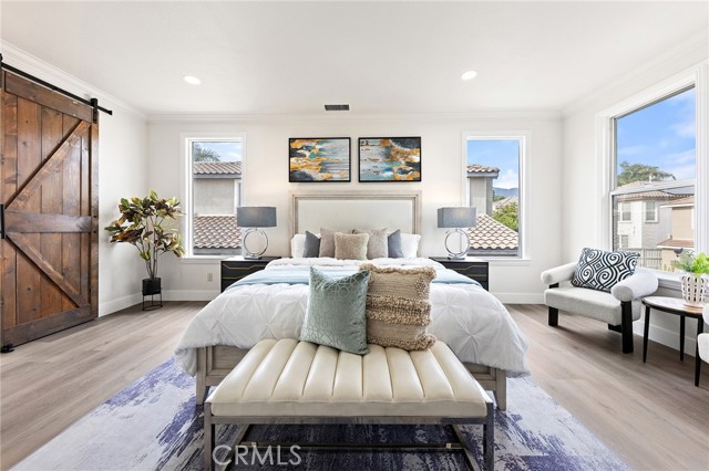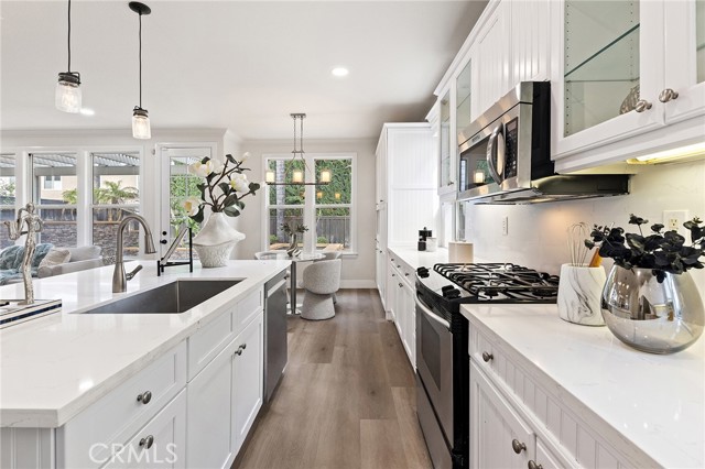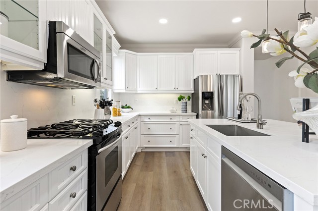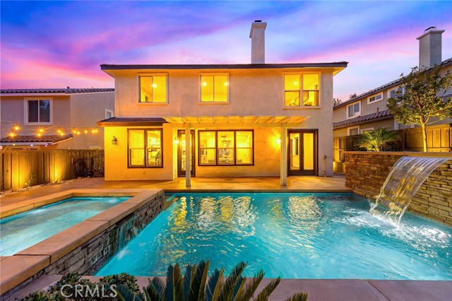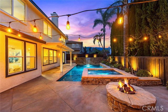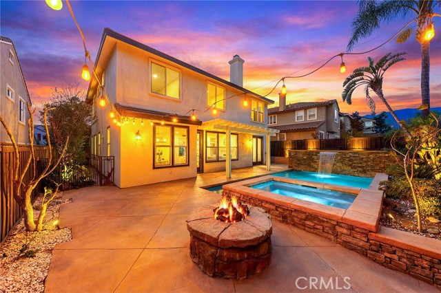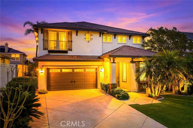 Impeccably maintained and stylishly updated, you will not want to miss seeing this beauty in person. The painted exterior gives this home a wonderful Mediterranean feel. Inside, even the most discerning buyers will be impressed. Featuring great and abundant natural light throughout, 4 bedrooms, 3 baths, loft, and a custom pool and spa, you'll find no better place to call home. Located in a highly regarded school district and just minutes from Victoria Garden shopping mall, restaurants, and freeways, convenience meets luxury. This house is nicer than most model homes. All upgrades are already done for you. whole house brand new waterproof floors, designer kitchen cabinets, granite countertops, stainless steel appliances, and a kitchen island overlooking the family room with a dual-sided fireplace and marble surround offer true pride of ownership. The backyard is an entertainer's dream: pool, spa, covered patio, gas fire pit. Downstairs features a large bedroom with French doors to the backyard, stylish barn doors at the closet, a gorgeous full bath, and a very large storage closet. Upstairs, the hall bathroom with dual sinks and custom tile work on the floor, tub surround, and wall above sinks gorgeous! Upstairs also offers 3 bedrooms, the loft, and the laundry room. There is so much more. A must see immediately!