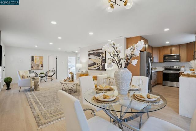 For the buyer who values simplicity, style, and a seamless daily routine, 1630 Nicholas Drive delivers an exceptional turnkey opportunity in a centrally connected Concord location. Set on a private corner lot, this thoughtfully reimagined single-level home offers the ease of modern living without compromise. Inside, a light-filled open layout creates an immediate sense of comfort, where a renovated kitchen anchors the home - featuring new appliances, clean finishes, and a natural flow ideal for everyday living. Every detail has been elevated for peace of mind, from the brand-new HVAC system and water heater to updated baths, new flooring, and recessed lighting - simply move in and enjoy. The outdoor spaces are equally intentional - freshly landscaped front and backyard areas designed for low-maintenance enjoyment, morning coffee, or weekend gatherings, all enhanced by the added privacy of the corner setting. Positioned just moments from BART, Highways, and the shops, dining, and energy of downtown Concord, this home is especially well-suited for buyers seeking commuter convenience without sacrificing neighborhood charm. Proximity to local schools and nearby parks further enhances its long-term livability and appeal.