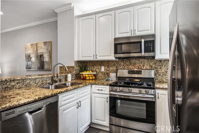 This gorgeous, updated 2-bedroom, 2.5-bath, 1,338 sq ft home is located in the private and desirable gated community of Bridgeport Terrace in Laguna Niguel. Close to great schools, world class beaches, shopping, restaurants, and major freeways. This pristine unit offers exceptional privacy with no one above or below and features high ceilings and an abundance of natural light throughout which includes a huge skylight upon entering the 2nd floor and an abundance of recessed lighting. Your new home has been upgraded with a new HVAC system furnace and AC unit (April 2024) , Level 2 EV charger (July 2023) , Electrical Subpanel (July 2023) Full PEX Repipe (November 2022), New Designer Neutral Paint (March 2026), Bathtubs refinished (March 2026), New Pantry Shelving (March 2026) and so much more… This property is a gem and in excellent shape. Your new home has beautiful Luxury Vinyl Plank Flooring throughout, including the stairs. The chef’s kitchen includes granite countertops, clean white cabinetry, stainless steel appliances, a pantry and has ample storage. Your kitchen has bar seating which is convenient for eating a quick meal or having your morning cup of coffee or tea. This well designed home has an exceptional open concept floor plan where the kitchen and dining areas open to the spacious family room with a modern ceiling fan and a stack stone fireplace surrounded by beautiful built-in cabinetry to display, store and personalize your favorite items. A private patio with vinyl fencing and its own exterior entrance is easily accessible from the family room and is perfect for year-round outdoor dining and entertaining. Upstairs features dual ensuite primary bedrooms, each with a modern ceiling fan and huge walk-in closet with custom organizers in one and its own private bathroom with tub and shower in both. Additional features include a convenient downstairs powder room, inside laundry room and attached direct access garage with built in storage cabinets and workbench plus you have one assigned uncovered parking space as well. The community offers a resort-style feel with a pool, spa, and barbecue area set in the center of the development. Bridgeport Terrace consists of only 48 total units, is VA approved and the HOA includes trash, basic cable, landscaping and structure insurance. There are no supplemental Mello-Roos taxes. This move-in-ready home is priced to sell quickly and will not last long.