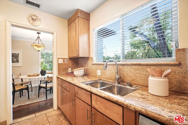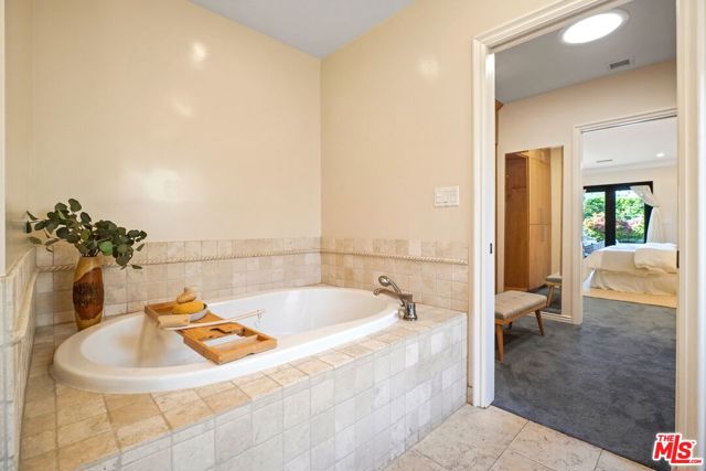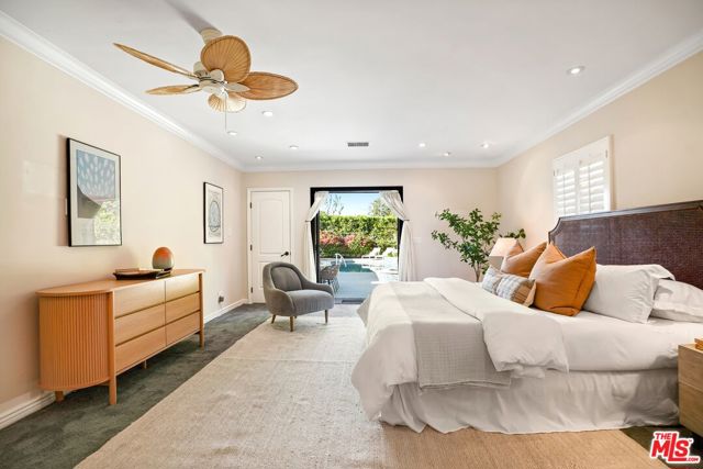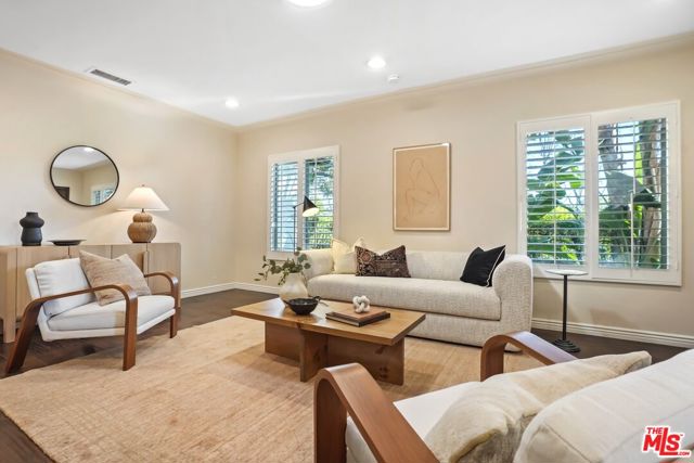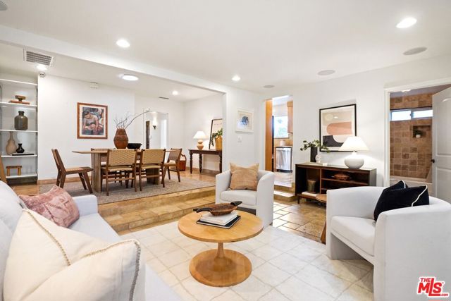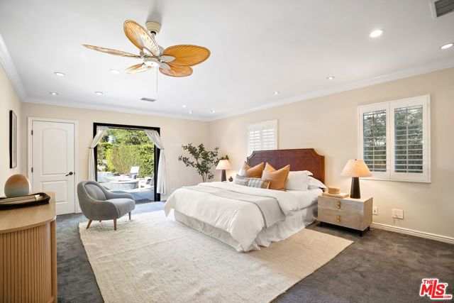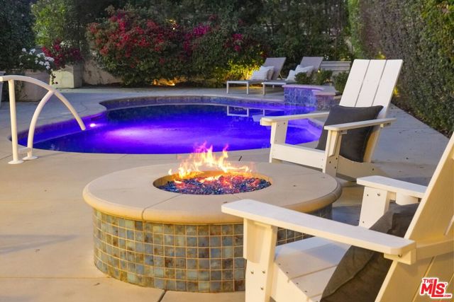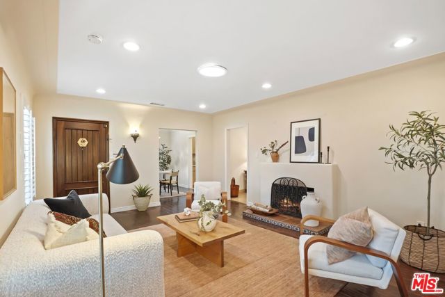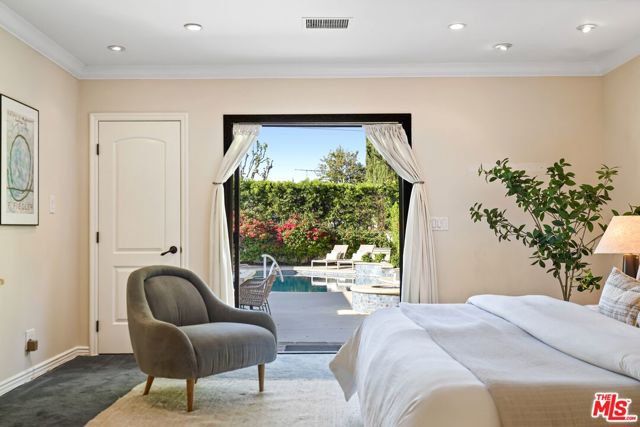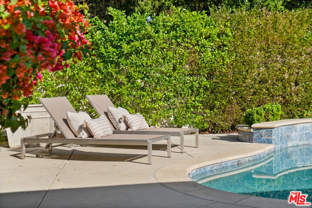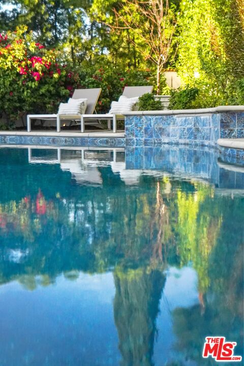 A sublime expression of classic California living, this spacious, updated single-story residence is ideally sited on a sweeping corner lot in the highly sought-after Colfax Charter School District. With generous scale, inviting living spaces, and a backyard designed for the quintessential Southern California lifestyle, the home offers extraordinary comfort and easy, relaxed living and entertaining in one of Valley Village's most beloved neighborhoods. The exterior presentation is a lush fusion of floral, greenery and towering trees with a high hedge enhancing both presence and privacy. Inside, a light-filled floorplan unfolds with gracious transition from room to room. Espresso wood and rich travertine grace the living areas. The remodeled kitchen is a cook's delight adorned with fine stainless steel appliances and adjoining breakfast room. Glass sliding doors bring the outdoors in and give way to a private backyard oasis. Replete with alternating colored pool with waterfall, firepit and dining and lounging patio, it's the ideal venue for warm, relaxed poolside lounging by day, cool gatherings and al fresco entertaining by night. Highlights include a direct access two car garage, solar panel system, Halo 5 water purification system, tankless water heater, speaker system, and mature fruit trees. Four bedrooms and two baths including a lux primary suite with exceptional walk in closet, spa inspired bath and direct pool access provides comfortable accommodations for family and guests. Ideally located just moments from NBC, CBS, Warner Bros., Disney and Universal Studios, beloved Valley Village Park, and the vibrant dining and arts scene of the NoHo Arts District. Here is an idyllic, vibrant tree-lined community and wonderful place to call home. Welcome!