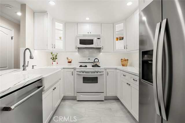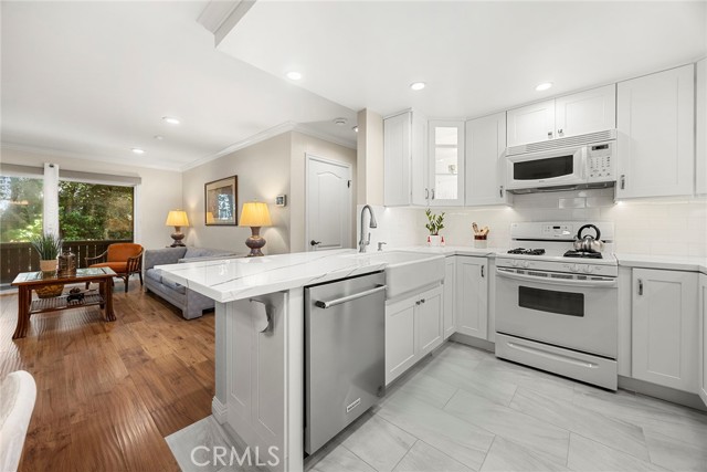Welcome home to this beautifully upgraded, single-level condominium nestled in the highly desirable Briar Oaks community! From the moment you step inside, you’ll love the light-filled, open-concept layout featuring stylish flooring, spacious dining area open to the family room which seamlessly flows into the updated kitchen, perfect for both everyday living and entertaining.  The kitchen shines with quartz countertops, bar seating, and modern finishes, highlighted by custom soft-close drawers and cabinets, a fantastic built-in china hutch complete with lighting, and a classic farmhouse sink, adding both character and functionality.  The spacious primary suite offers a stylish private ensuite bathroom with a walk-in shower, creating a true retreat. A well-appointed secondary bedroom and bathroom provide flexibility for guests, a home office, or additional living space. Both bedrooms feature mirrored closet doors and ceiling fans for added comfort.  Enjoy the convenience of inside laundry, an attached garage, and thoughtful upgrades throughout. As a resident of Briar Oaks, you’ll also have access to resort-style amenities including a sparkling pool, relaxing spa, lush greenbelts, and the added security of a gated community, plus HOA-covered trash, cable, and internet for added ease.  This is a must see!