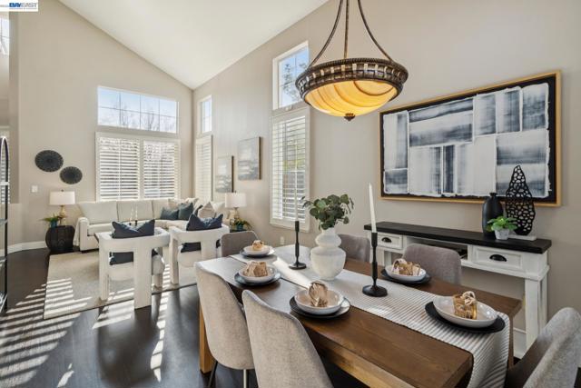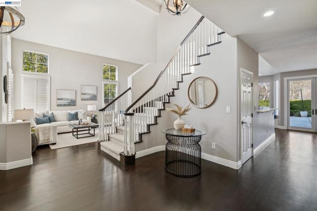 Spectacular 5 bedroom, 3 bathroom home in the highly sought-after Tassajara Ridge community. Step inside to rich hardwood flooring, designer paint, and classic plantation shutters that create a warm and inviting first impression. The thoughtful floor plan features a full bedroom and bathroom with a stall shower on the main level, ideal for guests, extended family, or a private office. Continue into the light-filled, updated kitchen showcasing quartz countertops, stainless steel appliances, and ample prep and storage space, all opening to comfortable living areas designed for both everyday living and entertaining. Upstairs, cozy carpet and spacious bedrooms provide peaceful retreats for everyone. Step outside to a resort-style backyard built for gatherings, complete with a sparkling pool and spa, low-maintenance lawn area, and a generous patio accented with charming bistro lights for relaxing evenings. A three-car garage offers abundant parking and storage. Located near top-rated SRVUSD schools, parks, shopping, dining, and commuter routes, this Tassajara Ridge home blends comfort, style, and convenience. Open SAT/SUN 4/11 & 12 1-4pm!