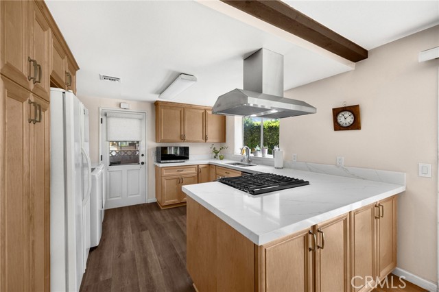 THIS HOME IS A MUST SEE! Beautiful, SINGLE-STORY home located on a cul-de-sac and includes 3 bedrooms, 2 bathrooms with 1,294 square feet of spacious living space. You are welcomed at the entry into the spacious living room which features beautiful front windows which provide plenty of natural lighting and a coxy fireplace. The large kitchen includes plenty of cabinets for storage, gas range and overlooks the beautiful dining room that has beautiful views of the backyard. The Primary Bedroom Suite features a large bedroom area, plenty of closet room and a beautiful ensuite bathroom. Additional generously sized bedrooms and a beautiful full-sized bathroom down the hall. This PRIVATE backyard is perfect for your next BBQ! Large patio area, grassy areas and mature landscaping. Additional features of the home include 2 car garage with extended driveway for additional parking, newer roof, home has been partially re-piped, original hard wood flooring and NO HOA. This home is located just a few minutes away from entertainment, restaurants, shopping and close to La Mirada Creek Park. This home is one you won’t want to miss!